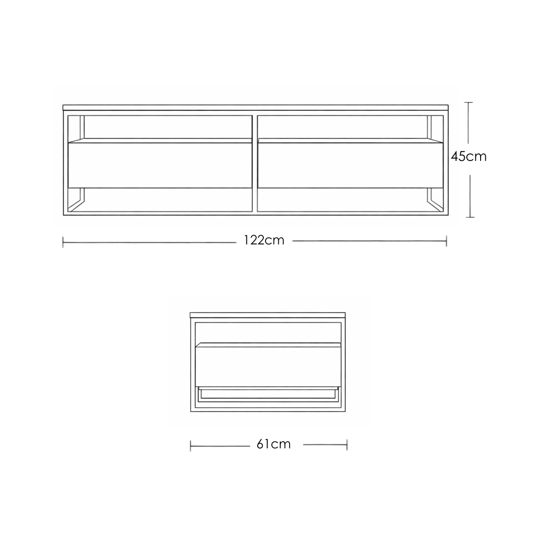 Alden is an industrial coffee- table. The metal frame is powder-coated with teakwood top and drawers. Apt for a rustic setup for a residence.