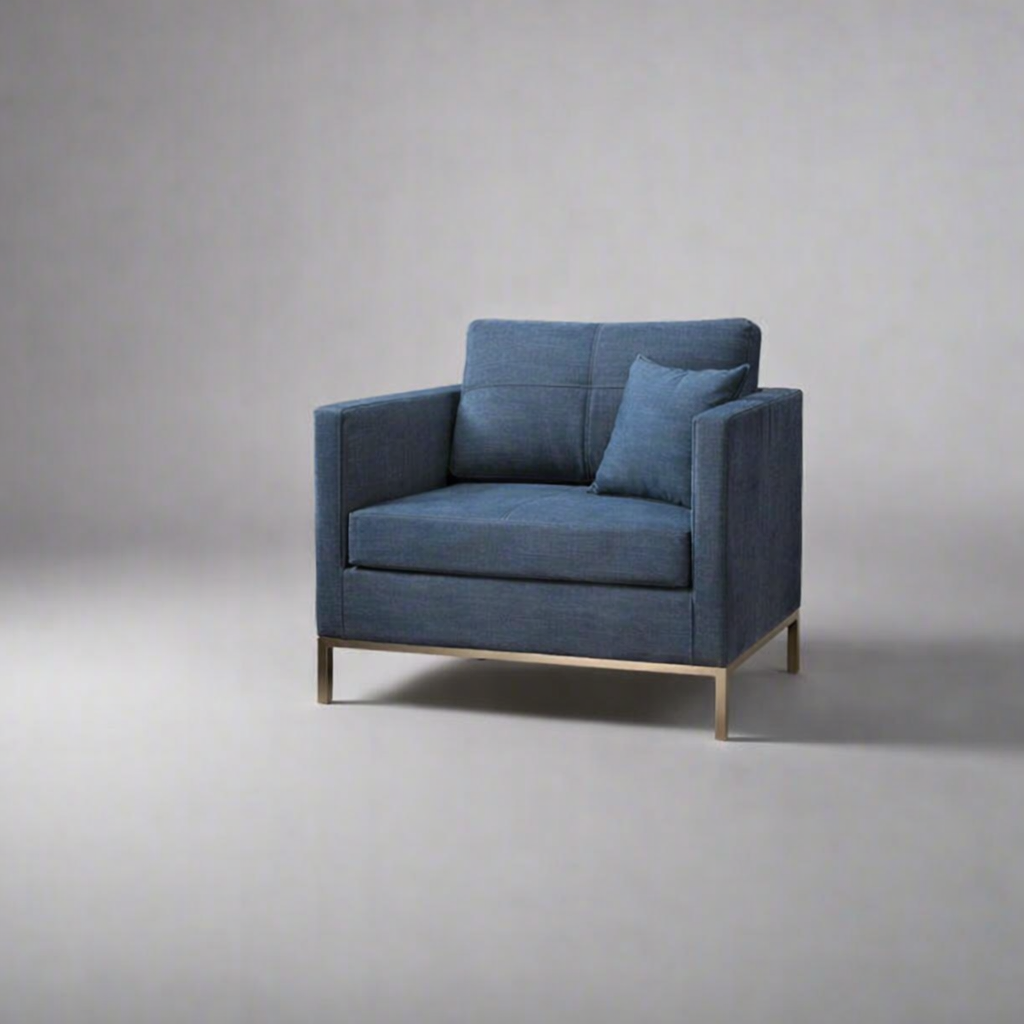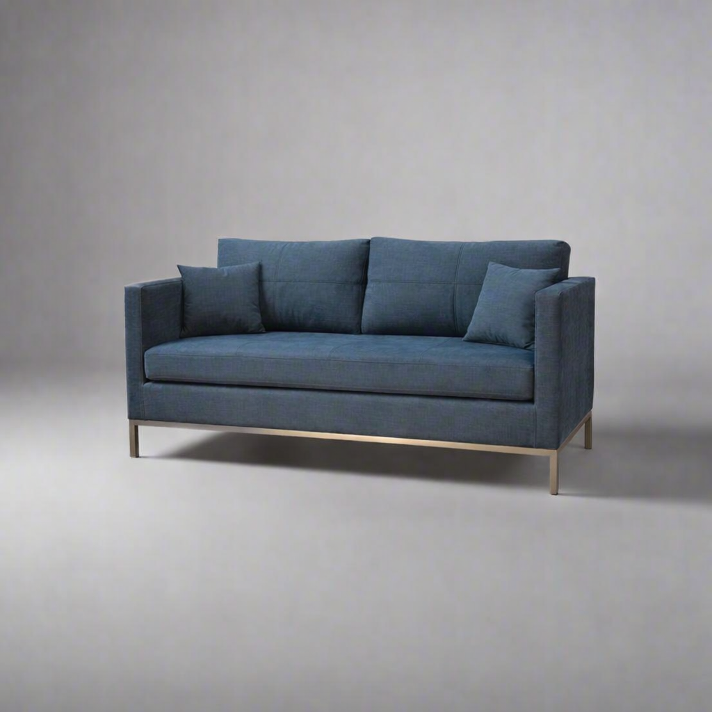 A modern sofa featuring sleek metal legs and structured form, designed for contemporary interiors that value both comfort and refined simplicity.