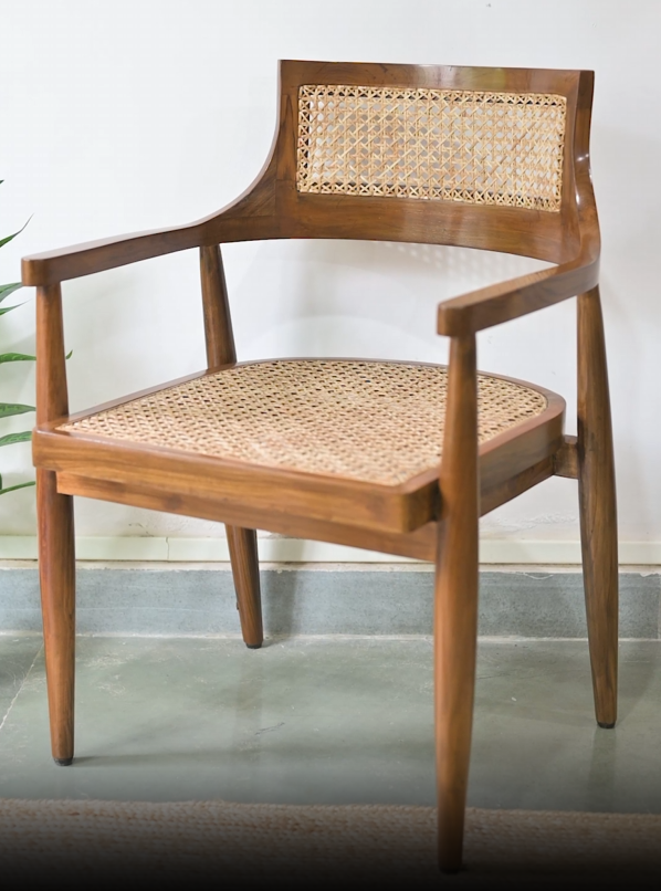 Crafted in solid European Ashwood with a matte finish. The natural cane seat and backrest are hand-woven in the traditional hexagonal weave style, offering lightness and resilience. As with all our pieces, Ansel is handmade by skilled Indian artisans.
