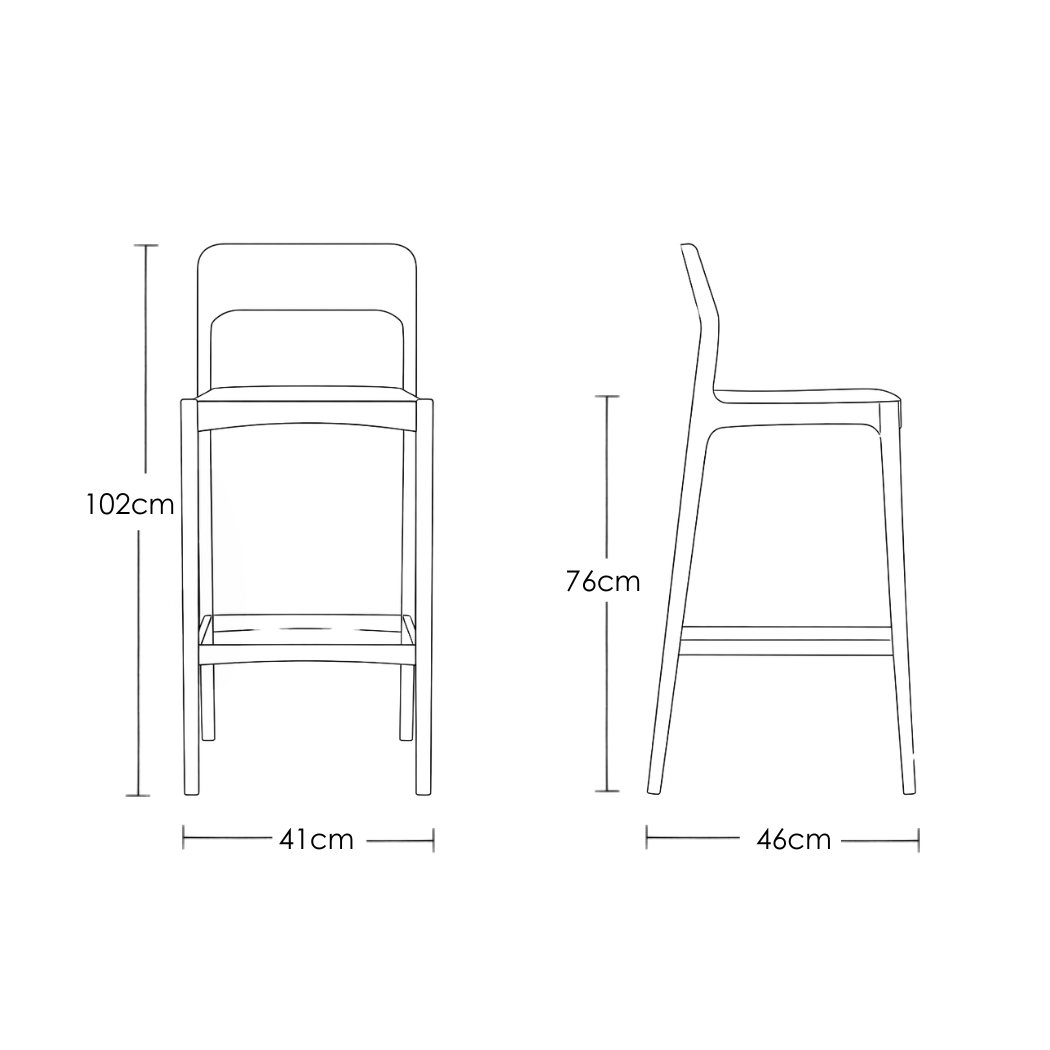 Eva's strong, deft lines make it capable and playful all at once. It has got subtle arcs throughout the entire construction. Each footrest features a subtle arc that mirrors the curves under all four sides of her seat support. Likewise, a slight bend is visible in the back. Whether hard at work in a coffee shop or bar, pulled up at the kitchen island or breakfast nook, Eva wins in looks and performance, every time.