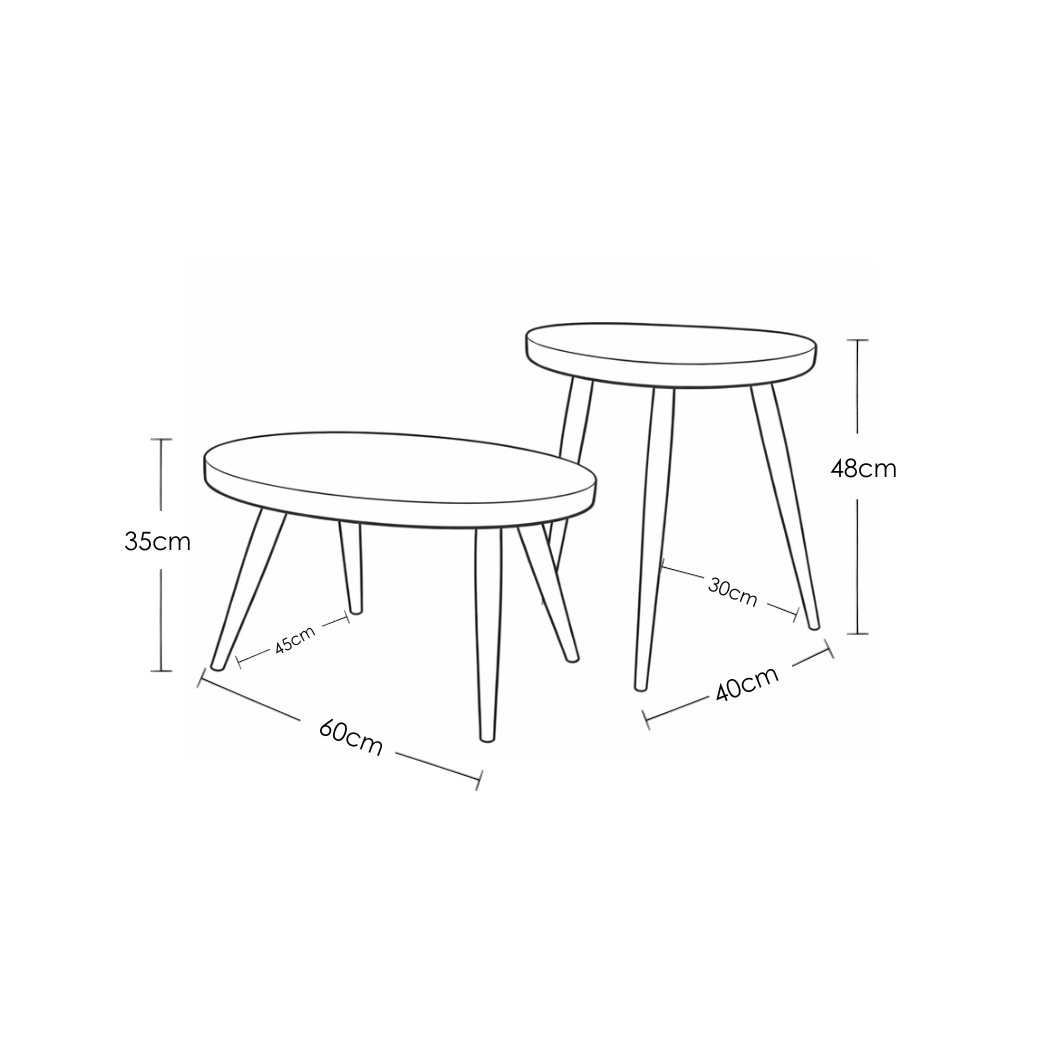Scandinavian coffee table and side table set from solid teak wood with grey legs. Made entirely by hand with attention to details. It fits perfectly into modern interiors and gives character to any room. Set of 2 tables.