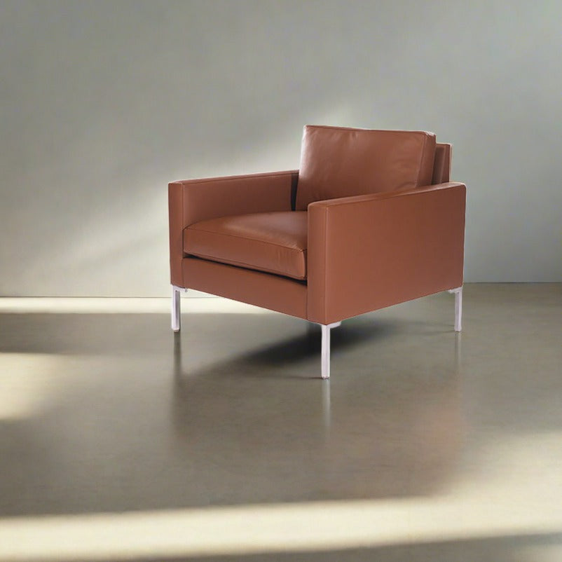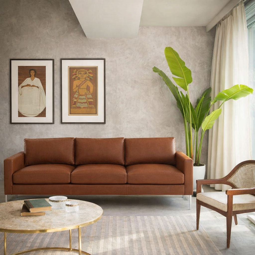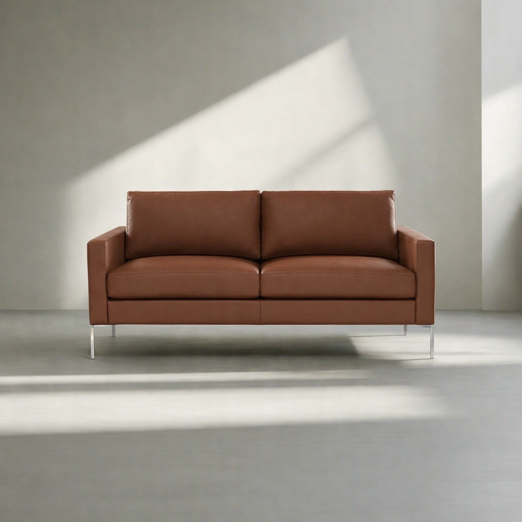 Modern Faux Leather Sofa with Metal Legs