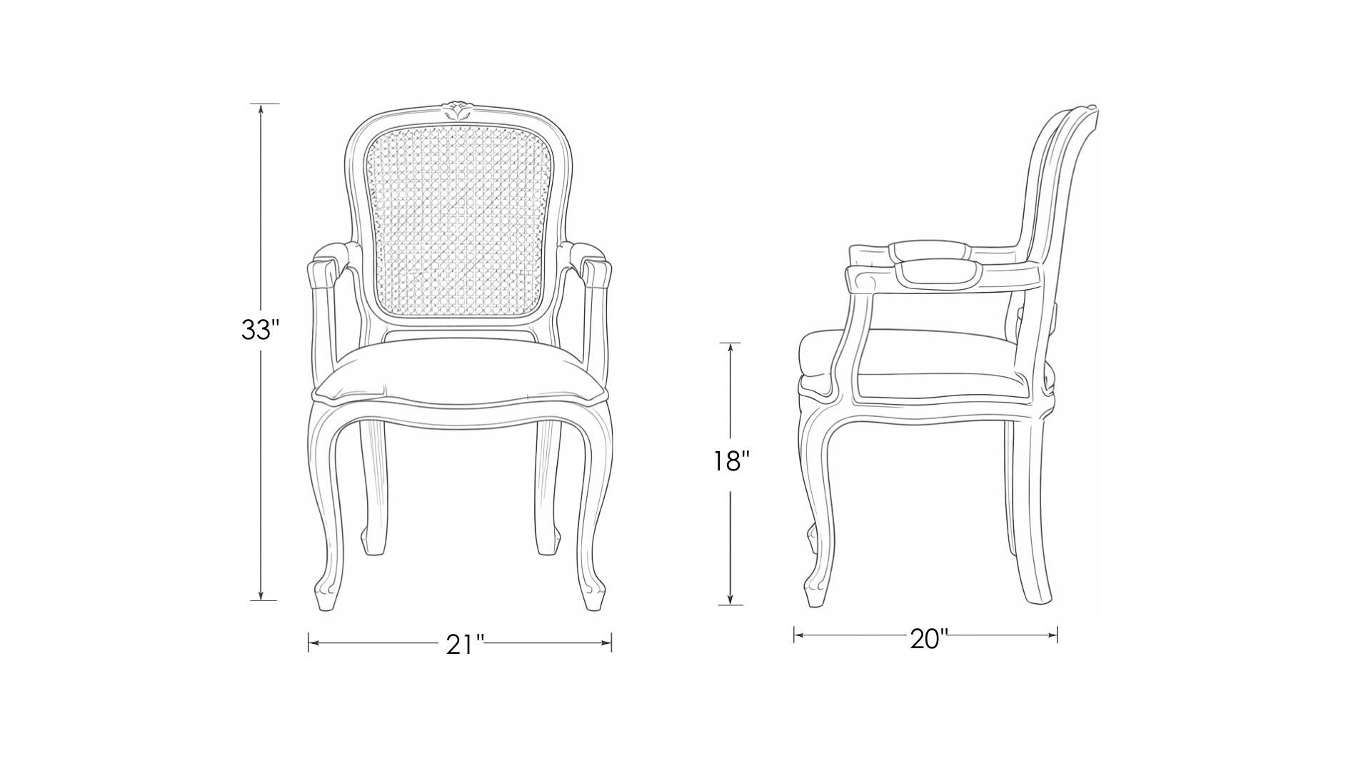 Our Gloriosa Cane Back Dining Chair showcases the elegant, clean lines of the Neoclassical style with a hand-carved teak wood frame and an upholstered seat. We have a handcrafted solution that will elevate the look and feel of your dining room. The beautiful grains of teak glow beneath our matt PU polish with slight distressing for an old-world and weathered look. Our master craftsmen have carefully worked on the French style.Â