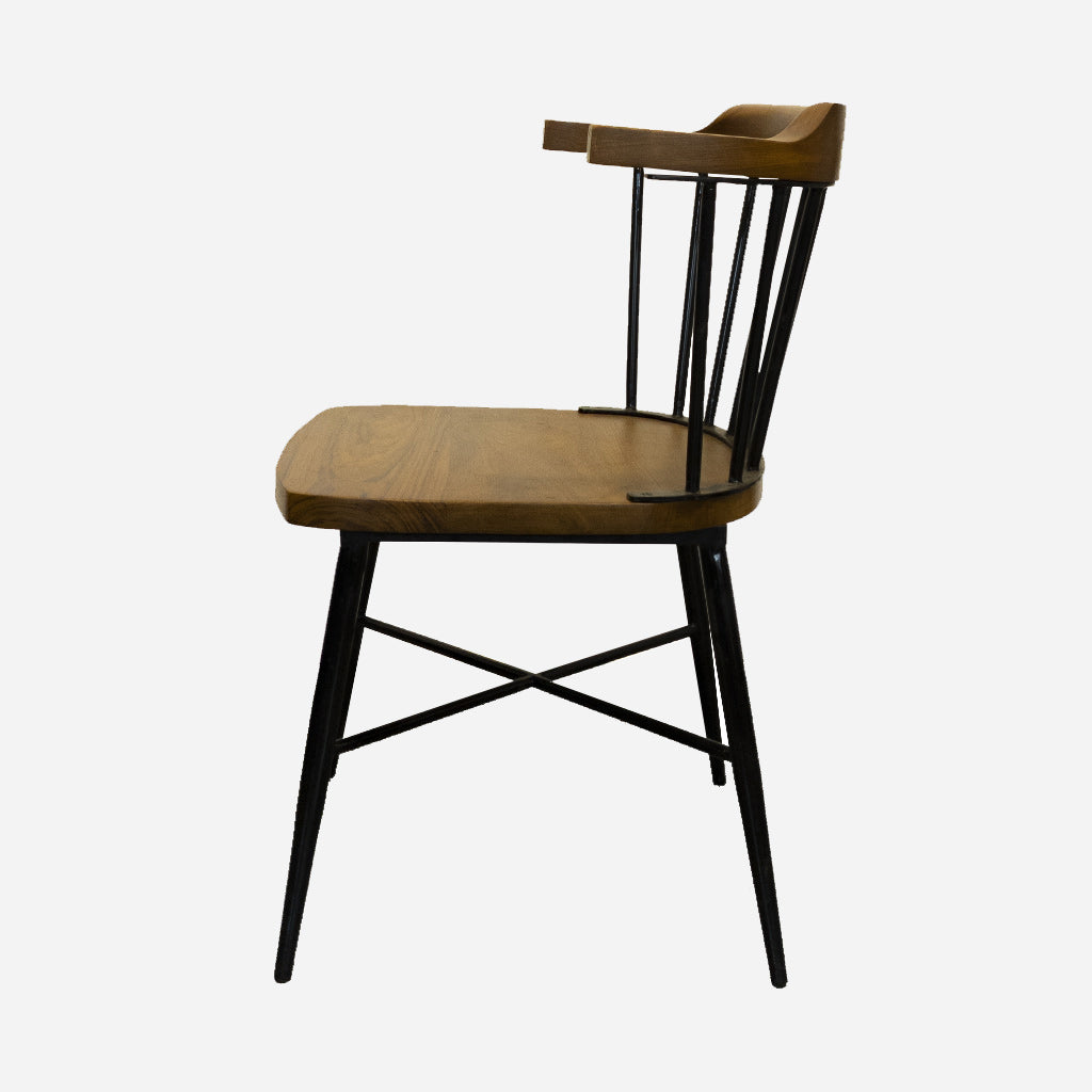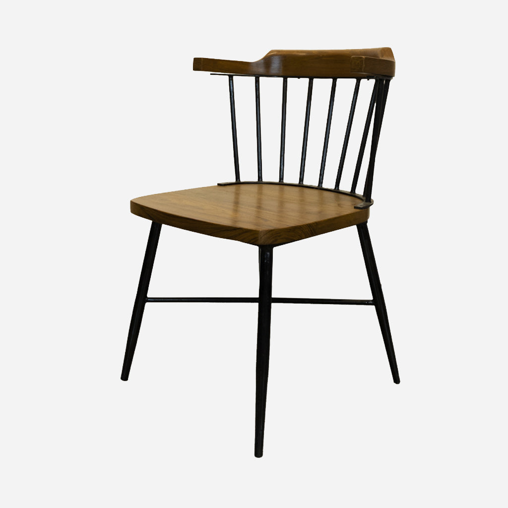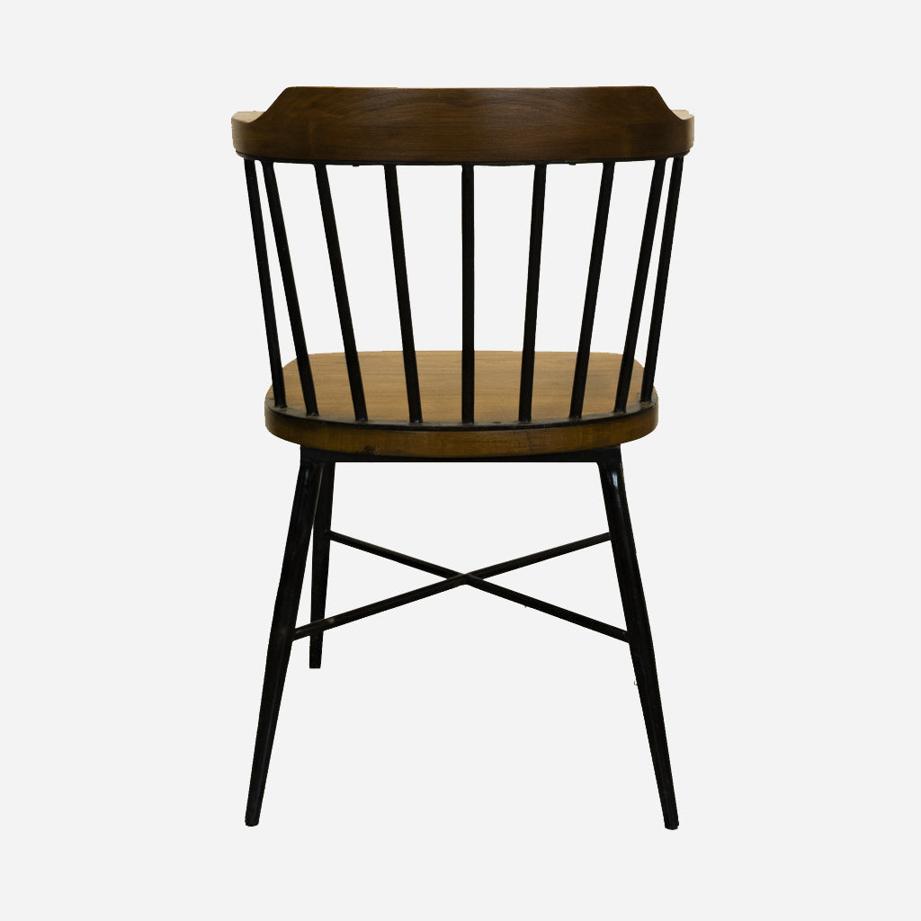 Reviving the simple elegance of a beautiful vintage farmhouse style for today's kitchens, the Glynis Dining Chair is perfect for a round or square table in your kitchen or cozy nook area. Its modern interpretation includes a timeless spindle back with a curved top and tapered legs in metal, adding to the comfort and effortlessly complementing any décor. Constructed of solid teakwood and black powder-coated mild steel with added cross-bar leg support, these chairs are sure to make a lasting impact in your eating area.