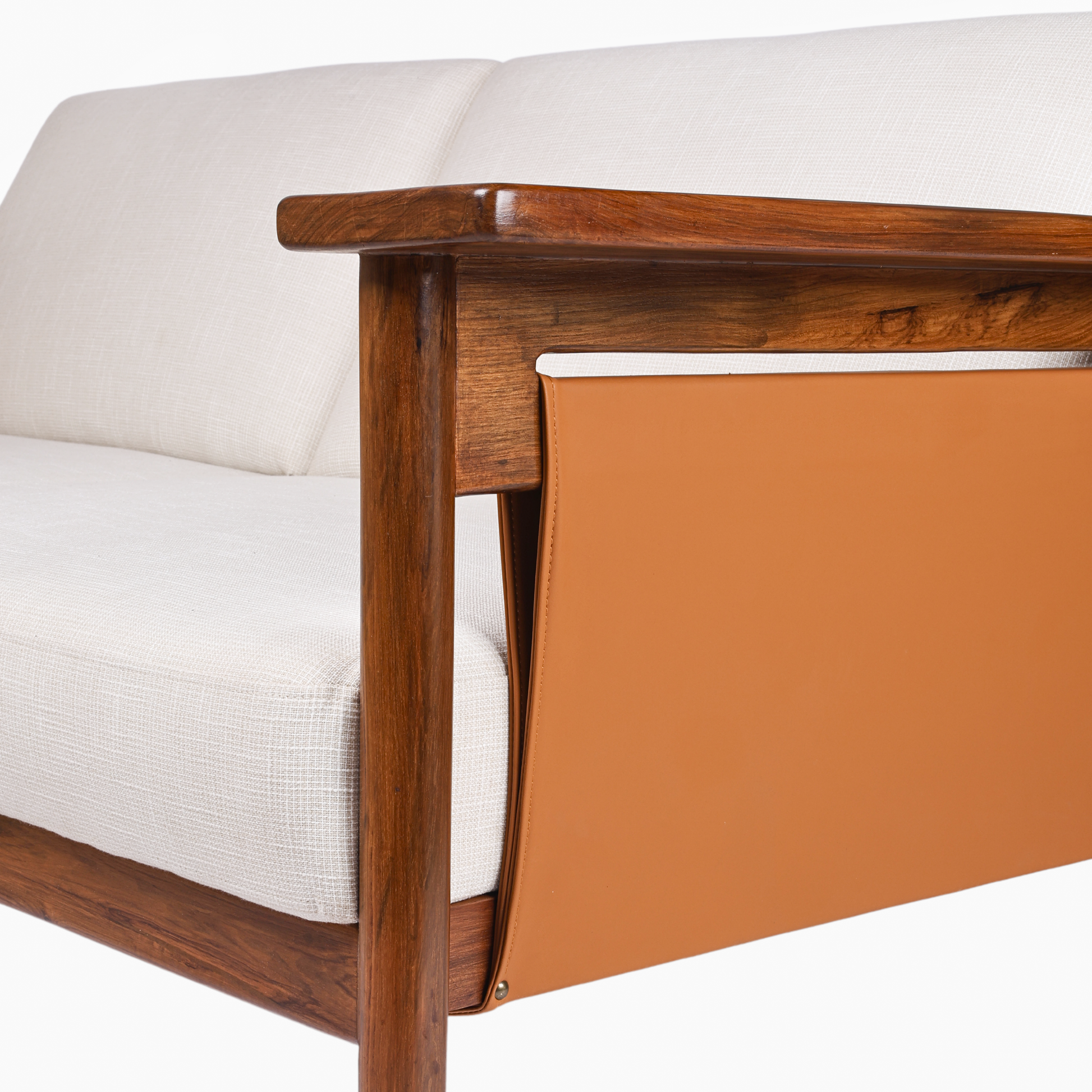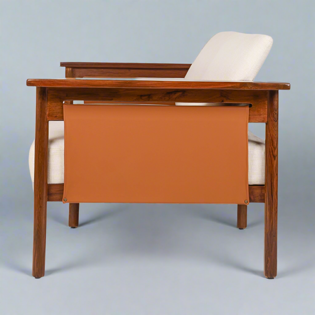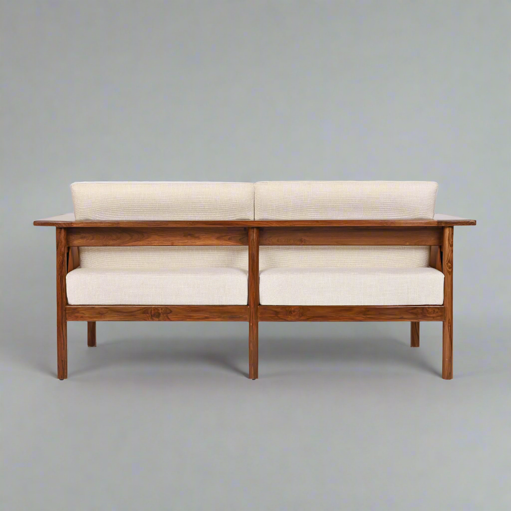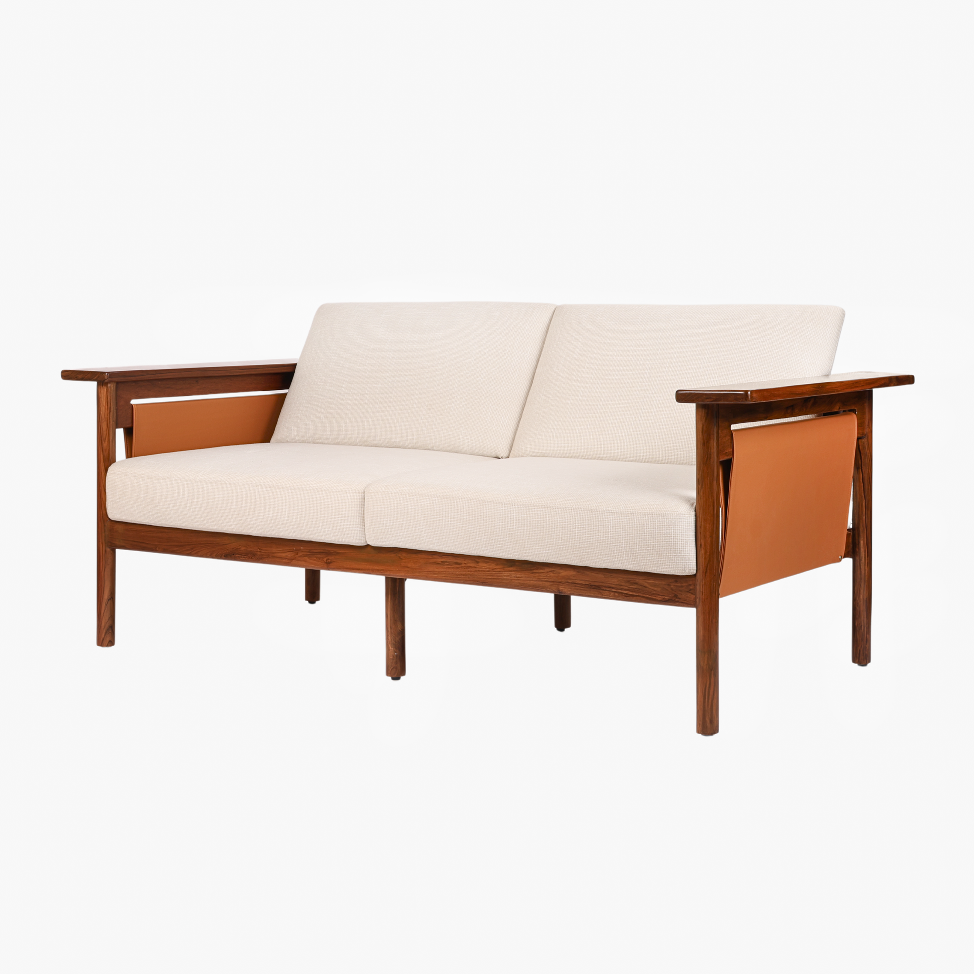 The 'Hibiki' sofa, meaning resonance, represents a perfect balance between form, function, and natural materials. Its design emphasizes clean lines and organic shapes, creating a visually soothing yet practical piece. Upholstered in soft textured fabrics, the sofa offers comfort while reflecting a mindful connection to nature. The frame, crafted from reclaimed Teakwood, highlights a raw, earthy aesthetic that complements the soft cushions. 'Hibiki' embodies the idea of harmony, where every element works together to create a cohesive and peaceful living space, resonating with both modern and traditional design sensibilities.