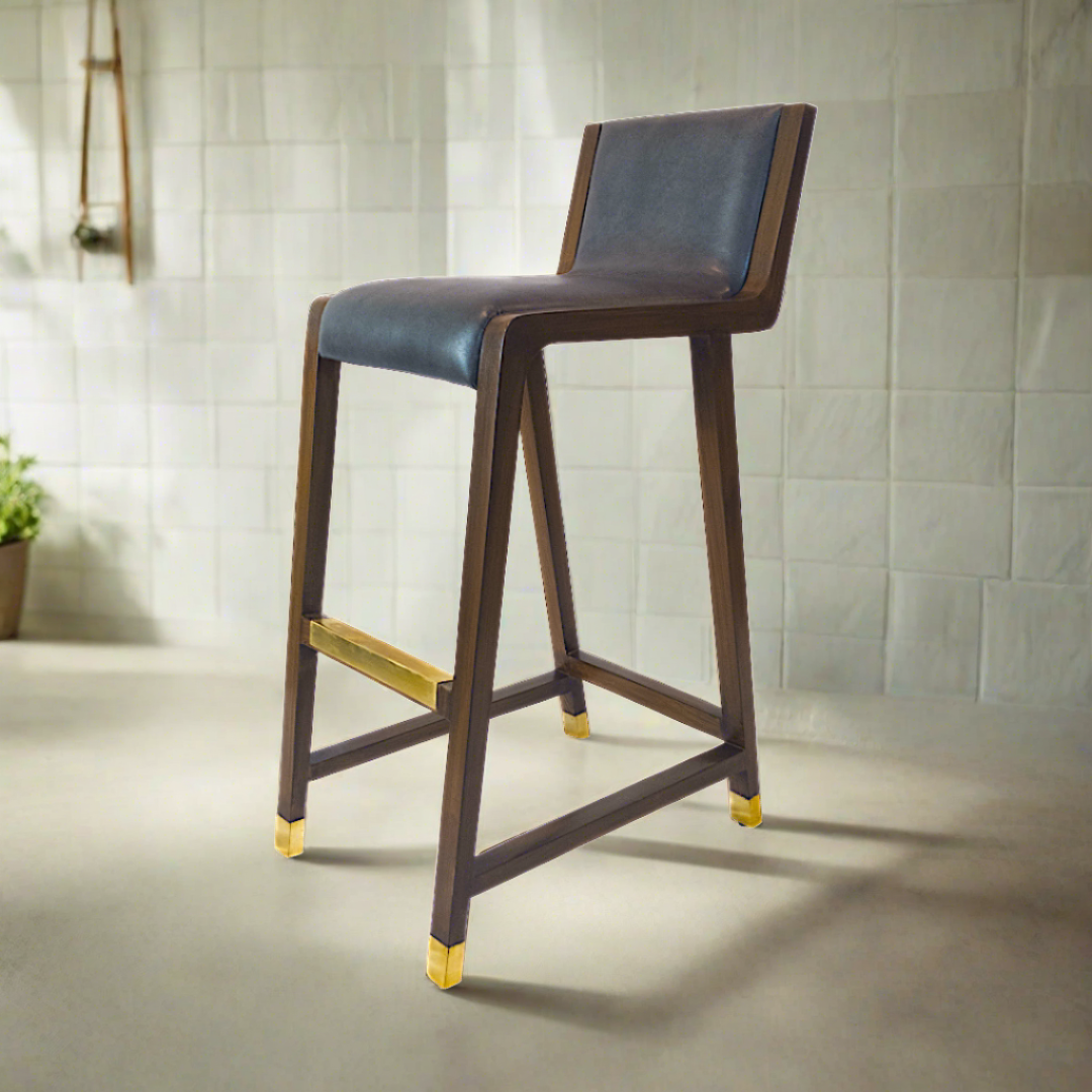 Introducing Jude, the ultimate in luxury barstools. Crafted from beautiful beech wood and boasting an inclined back, this upholstered stool offers unmatched comfort. Brass accents on the footrest and legs add timeless elegance, while the brass cap ensures easy maintenance and durability. Elevate your bar space with Jude.
