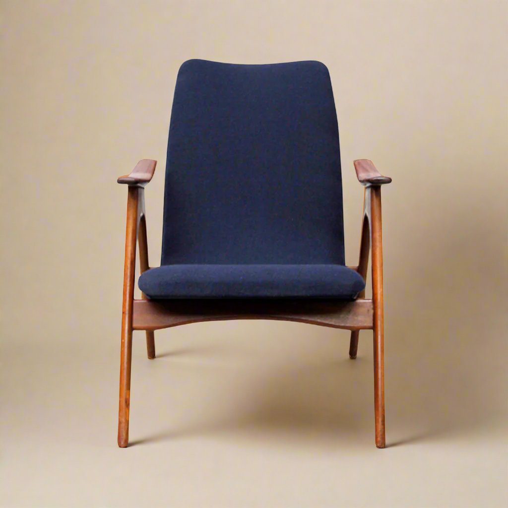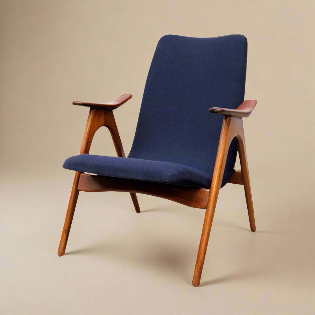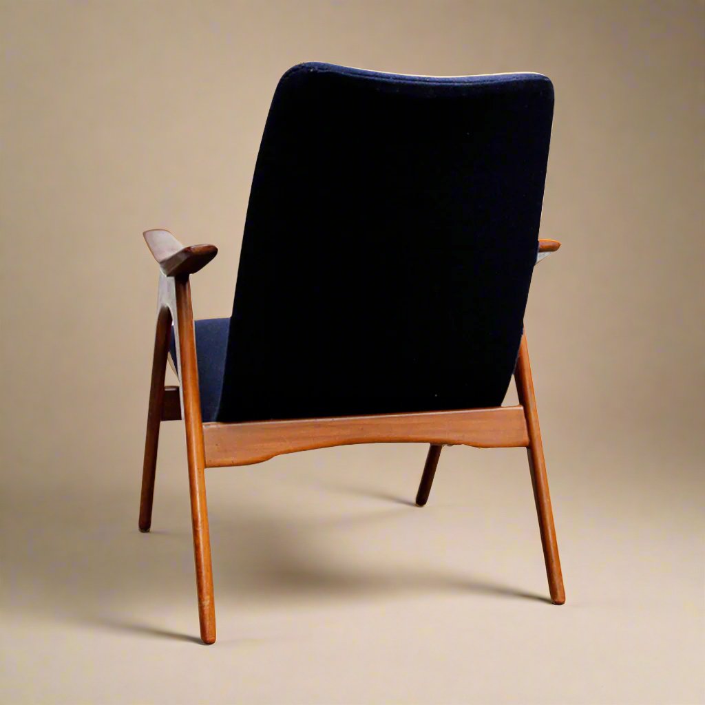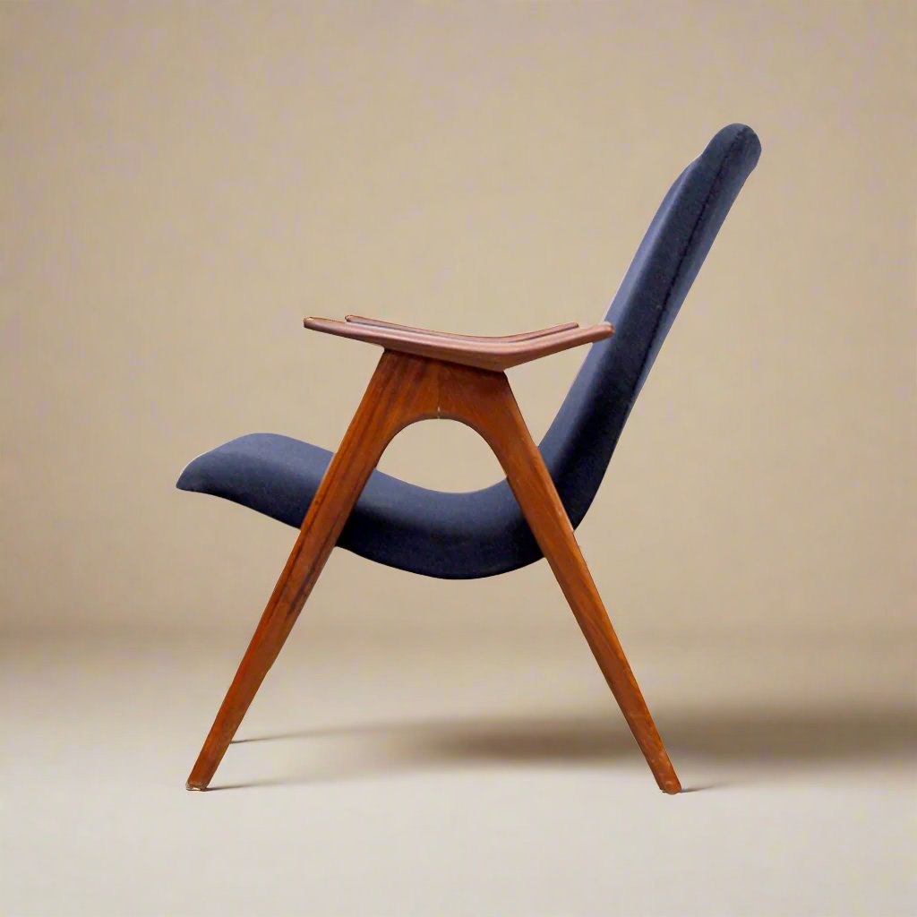 Boldly designed, this ingenious Danish lounge chair offers a spacious yet cozy seating experience. A single frame curves the seat into a narrow back supported by a beautifully sculpted teak frame, giving it a floating effect. The back has angles backward allowing one to recline comfortably in the chair. Inspired by a mid-century modern era, our Kyle Lounge chair makes a statement in any office cabin or living room.Â