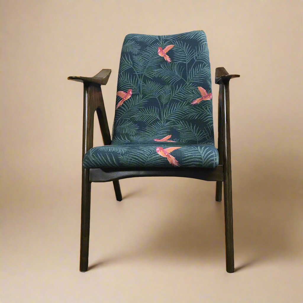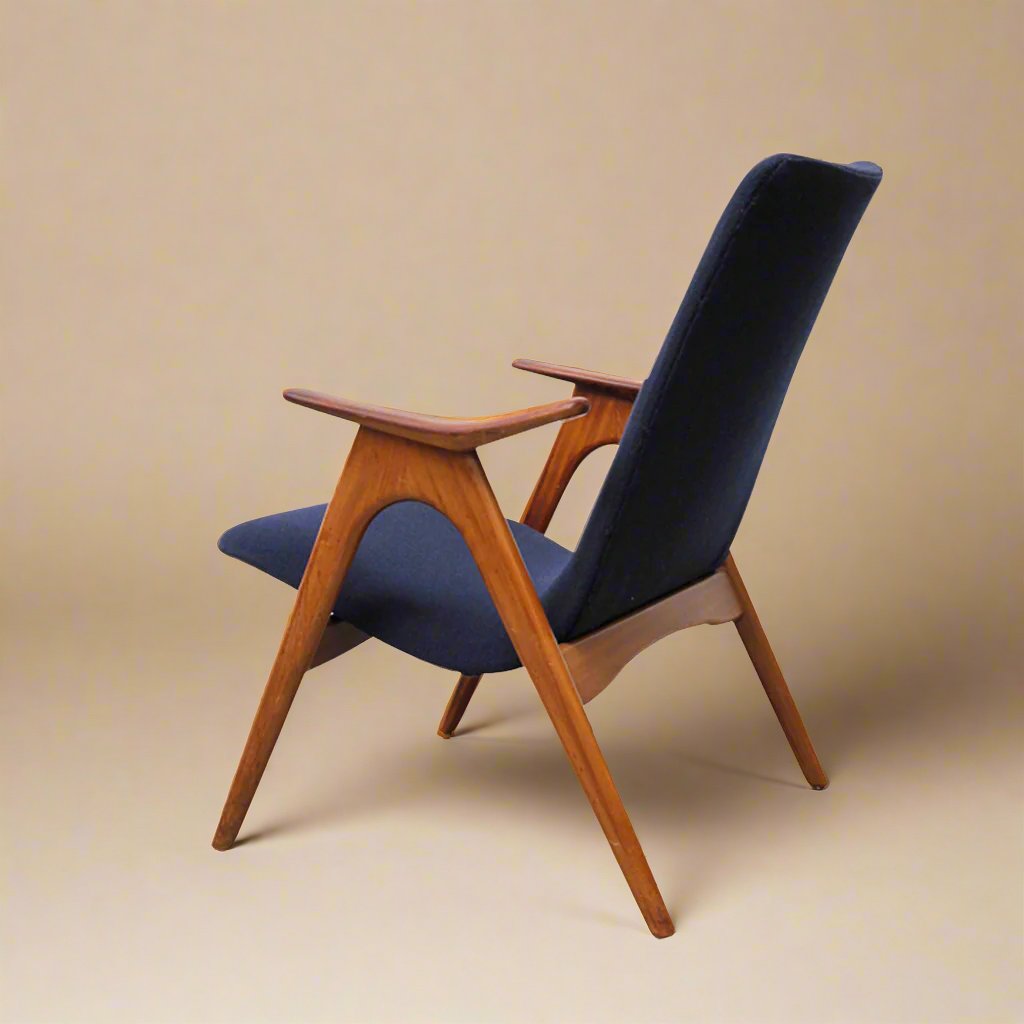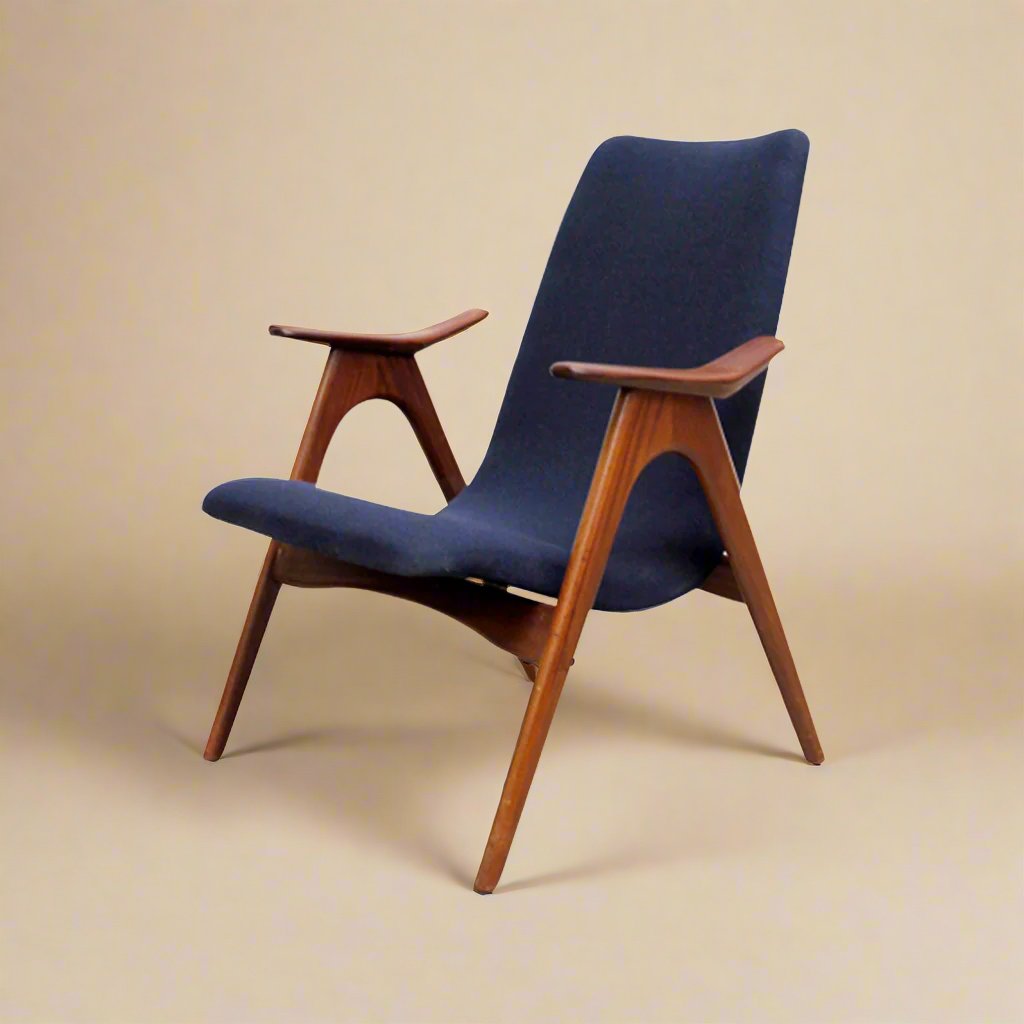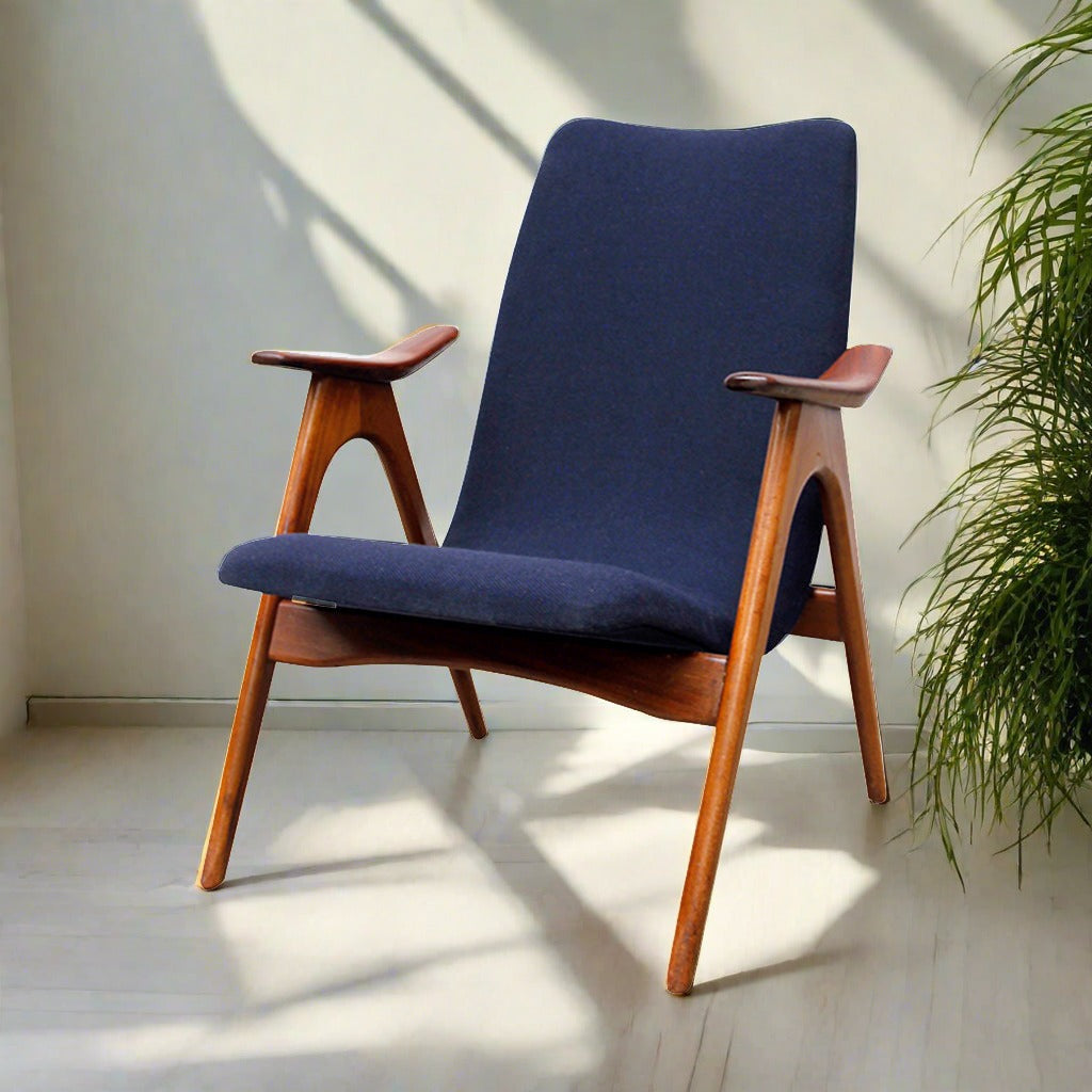 Boldly designed, this ingenious Danish lounge chair offers a spacious yet cozy seating experience. A single frame curves the seat into a narrow back supported by a beautifully sculpted teak frame, giving it a floating effect. The back has angles backward allowing one to recline comfortably in the chair. Inspired by a mid-century modern era, our Kyle Lounge chair makes a statement in any office cabin or living room.Â