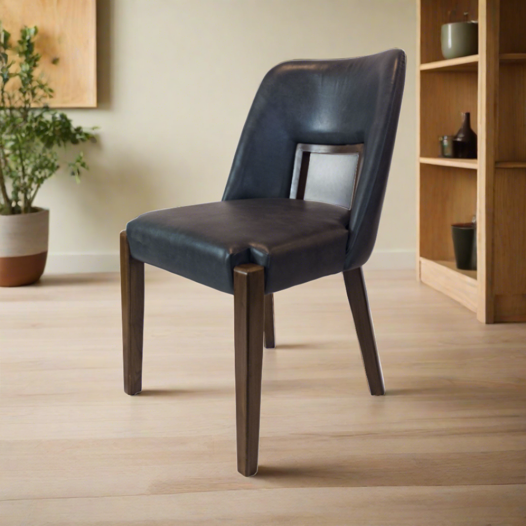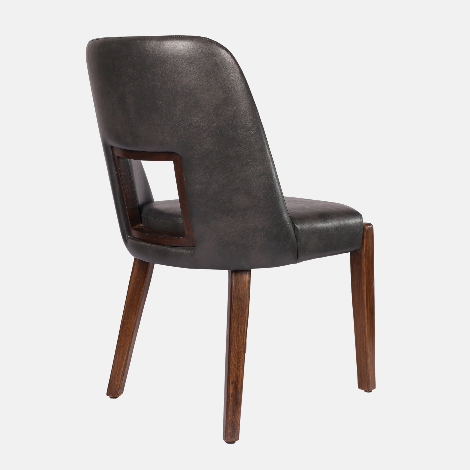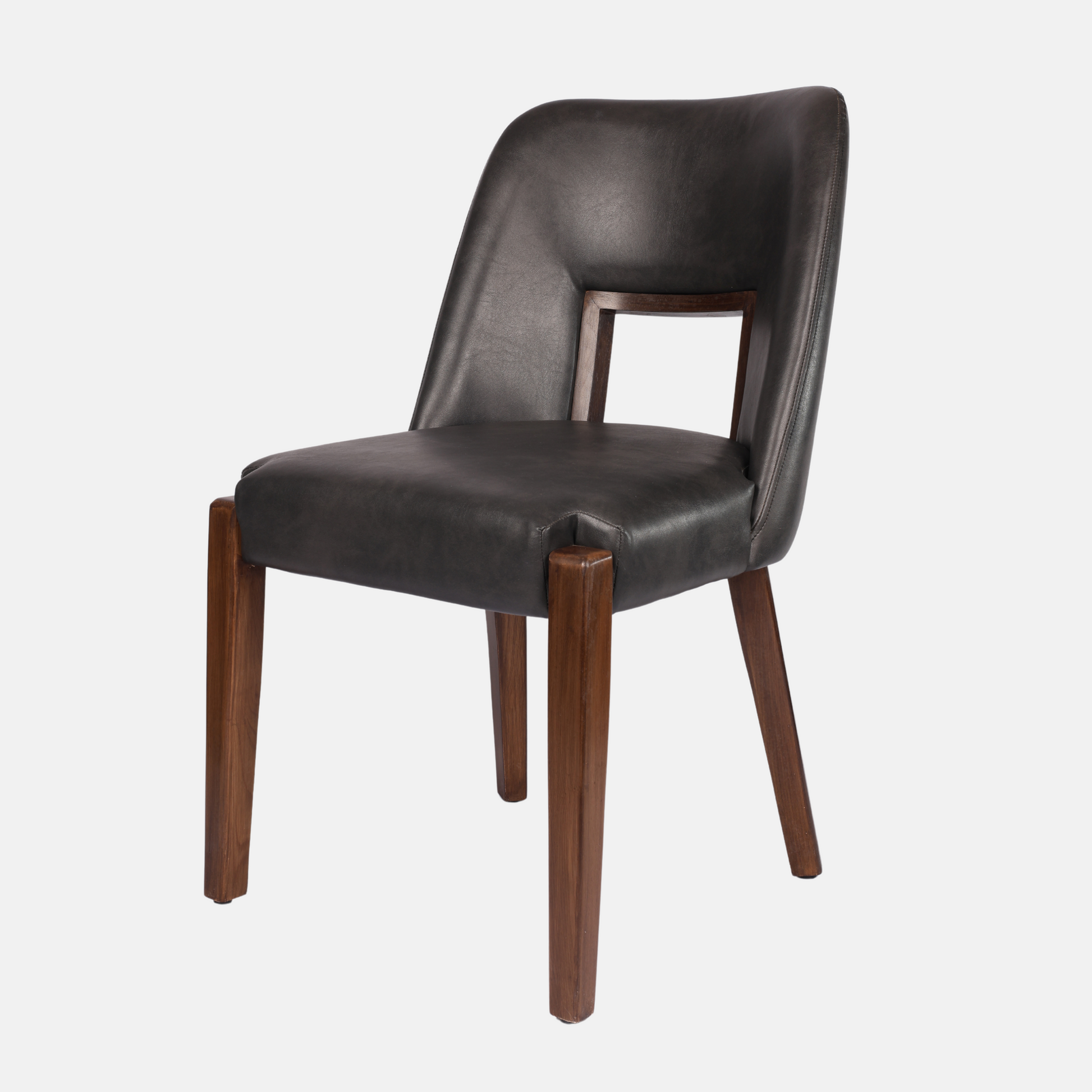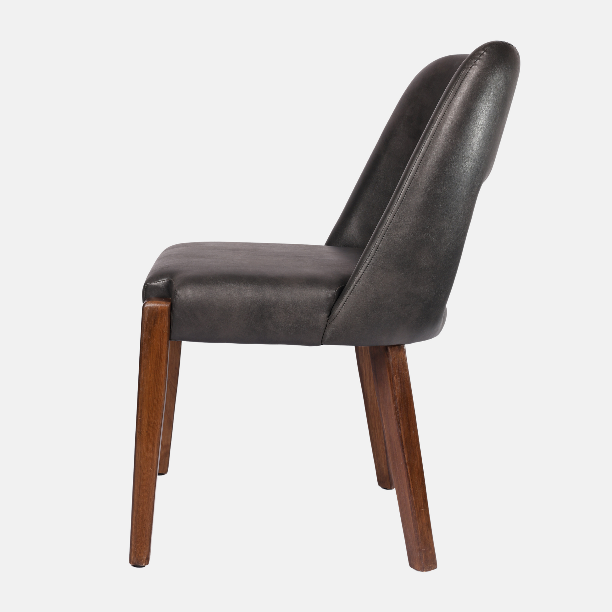 Elevate your dining experience with May, the epitome of modern luxury. This upholstered dining chair with wooden legs showcases an angled back for ultimate comfort while adding a sleek touch to your space. Perfect for sophisticated dining at home or a high-end restaurant.