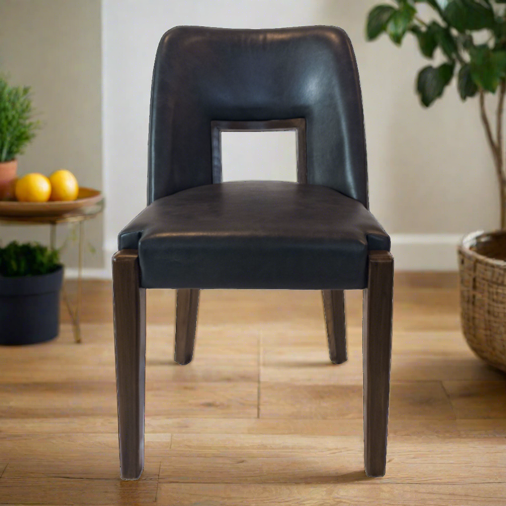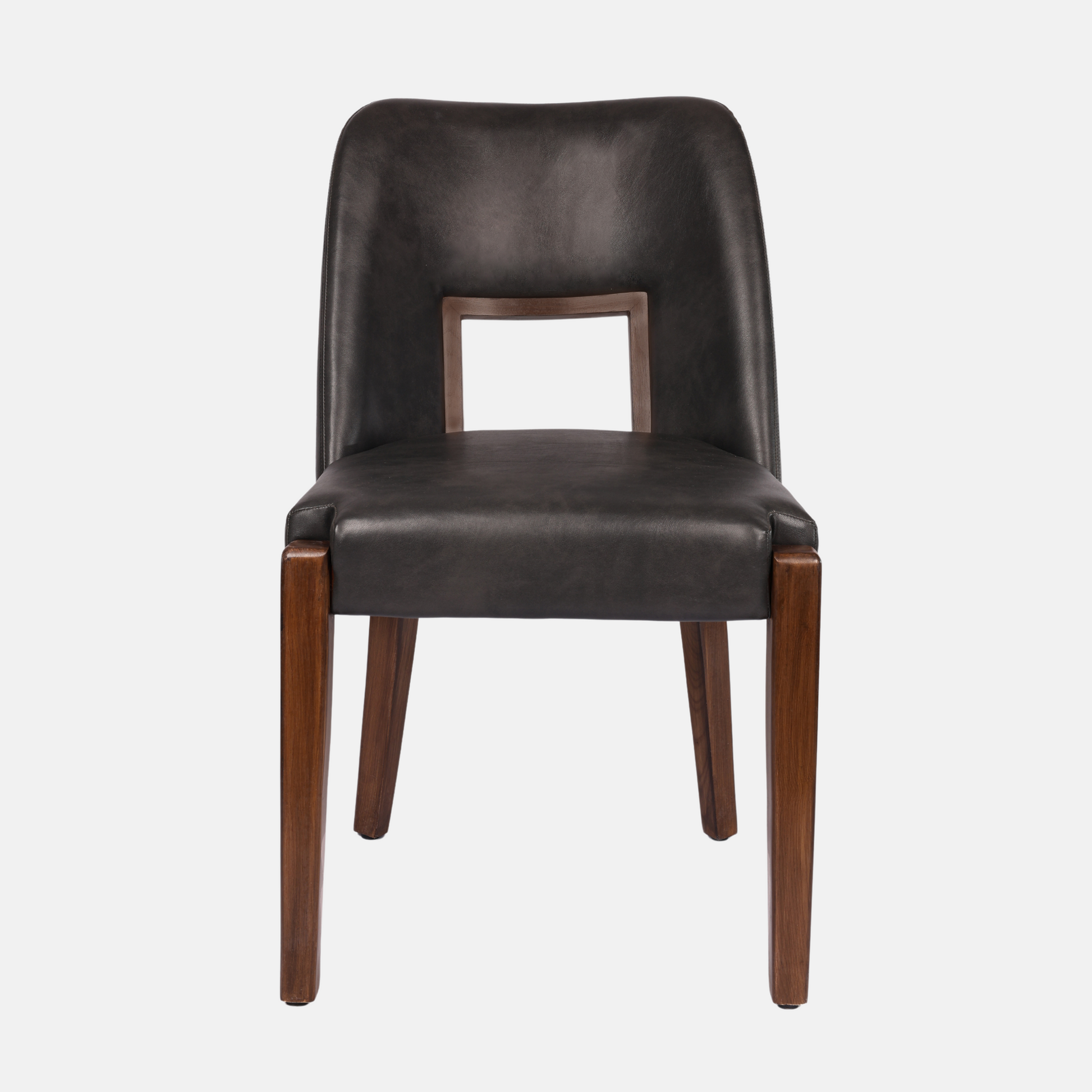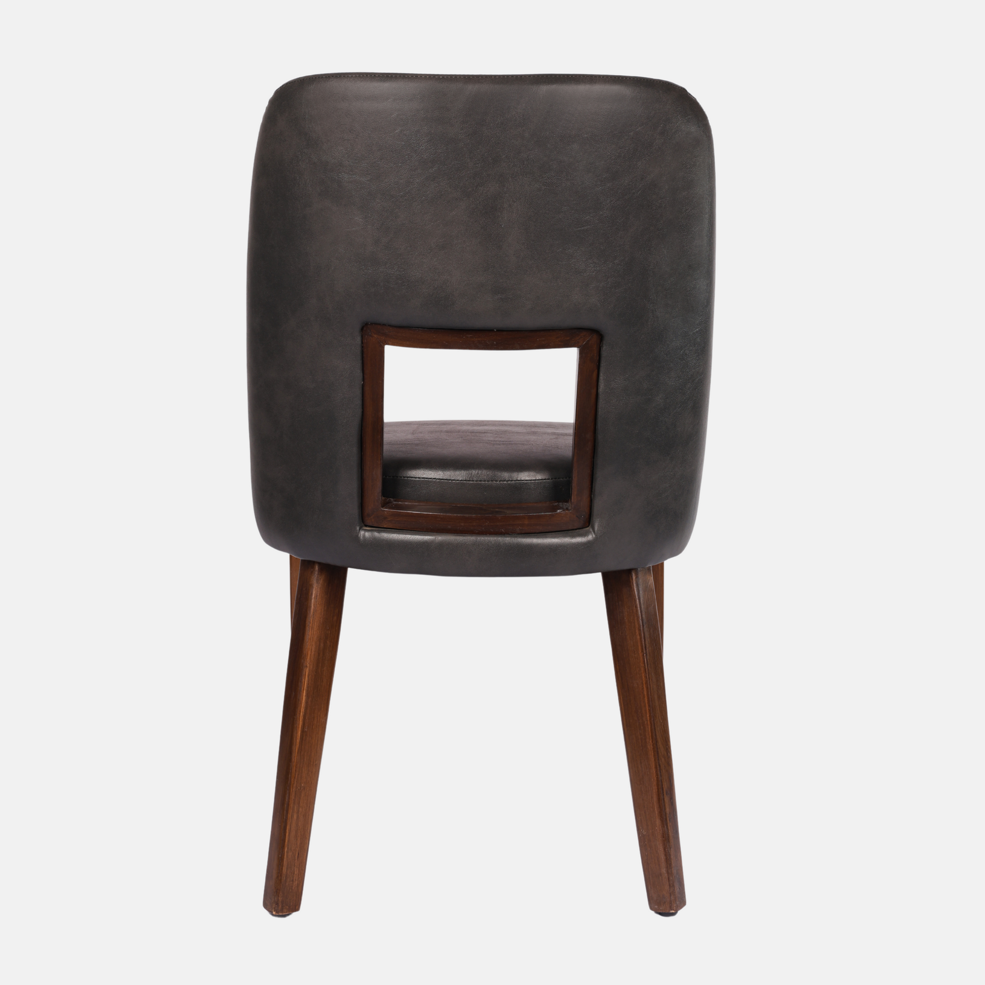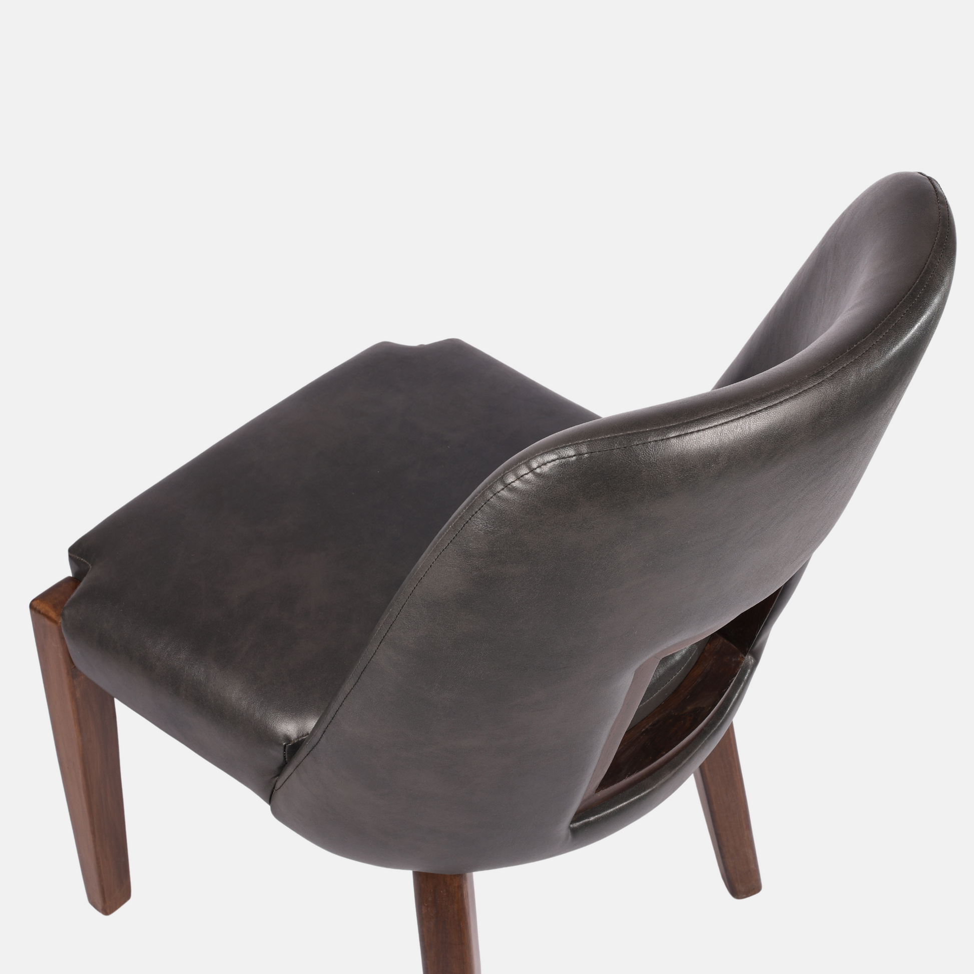 Elevate your dining experience with May, the epitome of modern luxury. This upholstered dining chair with wooden legs showcases an angled back for ultimate comfort while adding a sleek touch to your space. Perfect for sophisticated dining at home or a high-end restaurant.