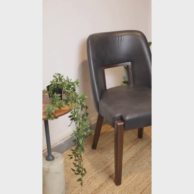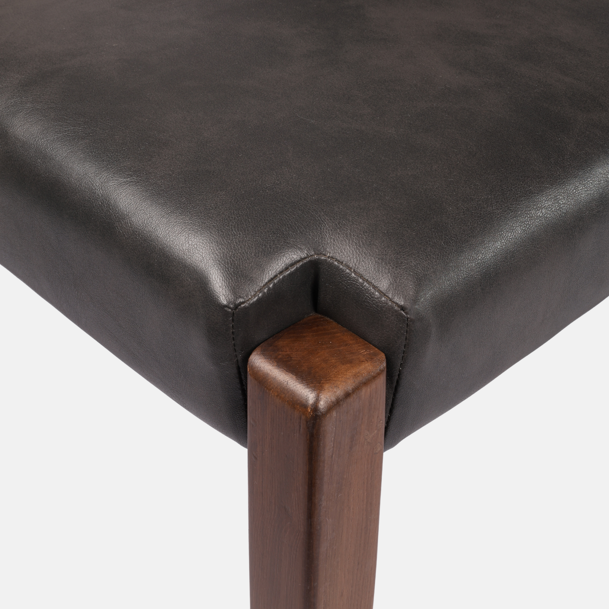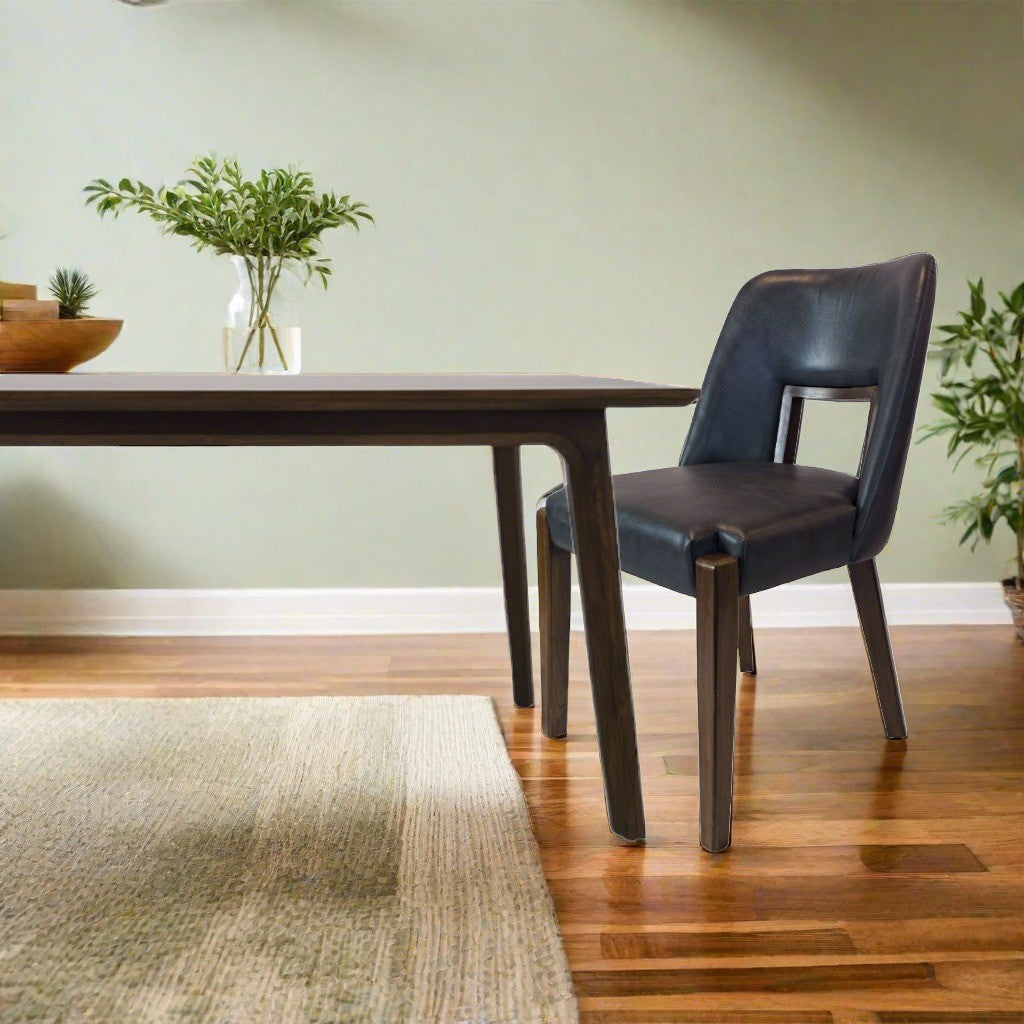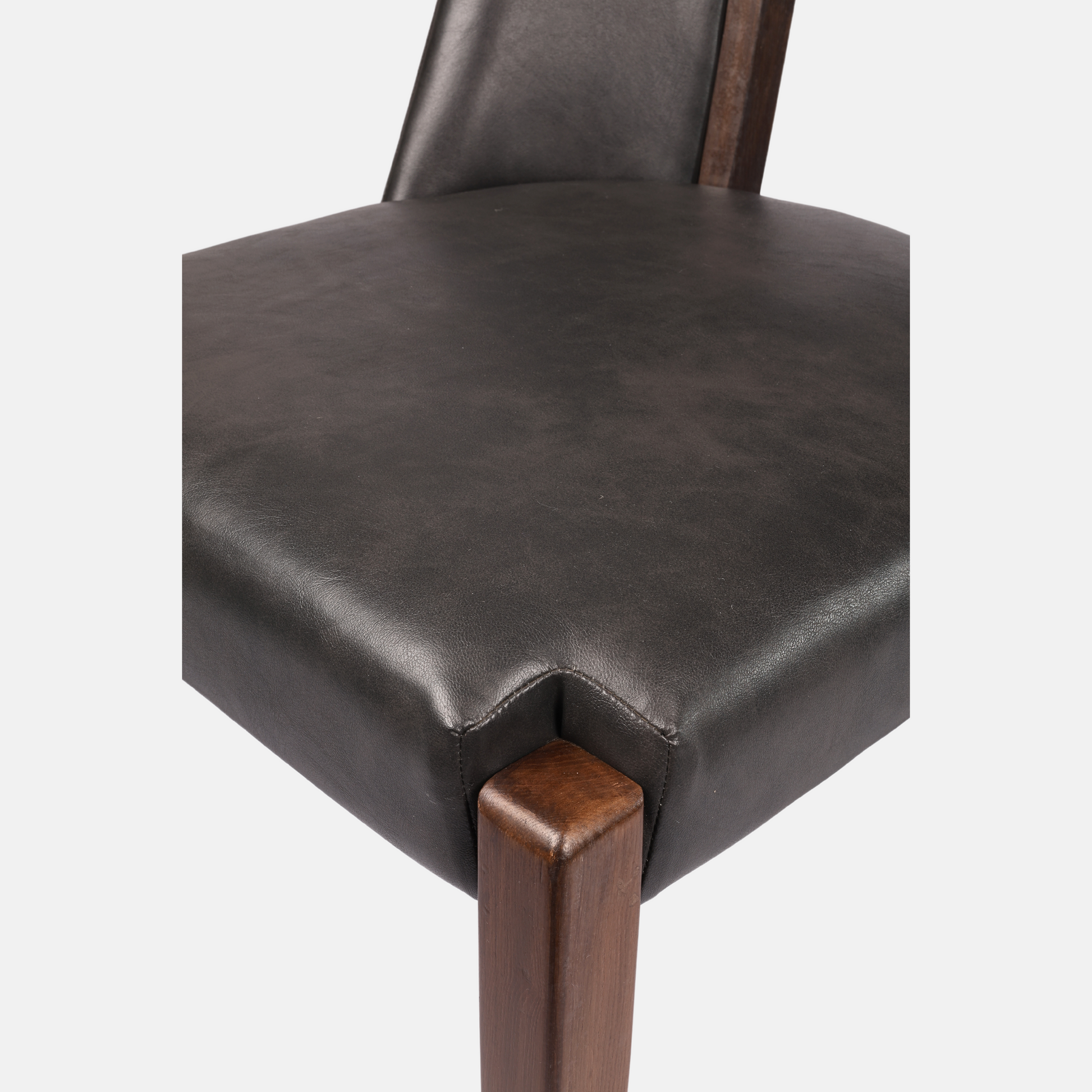Elevate your dining experience with May, the epitome of modern luxury. This upholstered dining chair with wooden legs showcases an angled back for ultimate comfort while adding a sleek touch to your space. Perfect for sophisticated dining at home or a high-end restaurant.