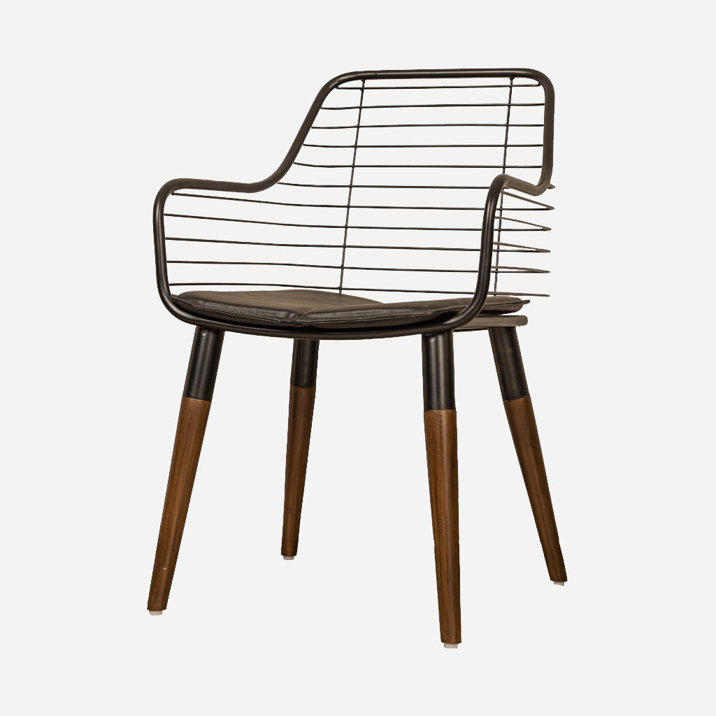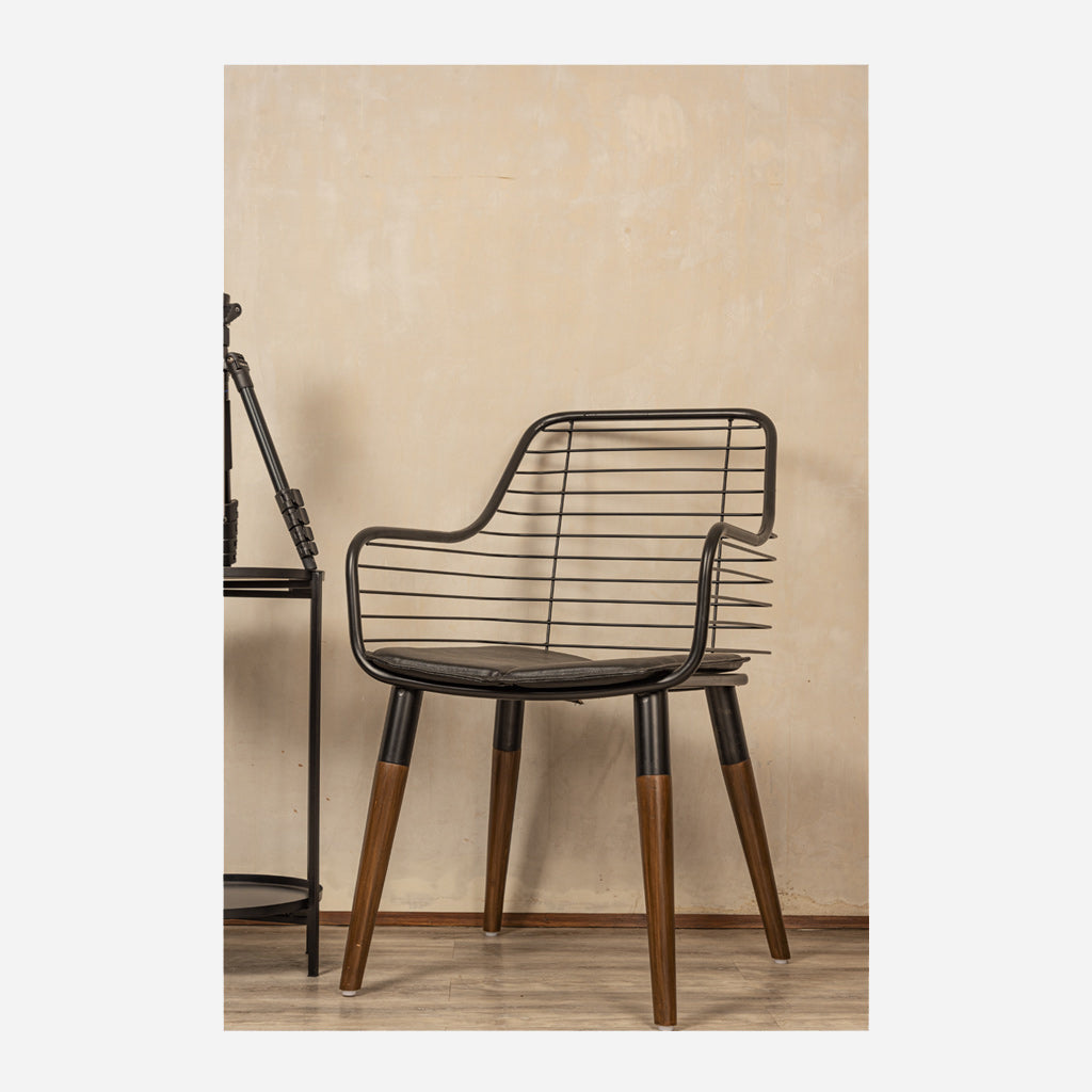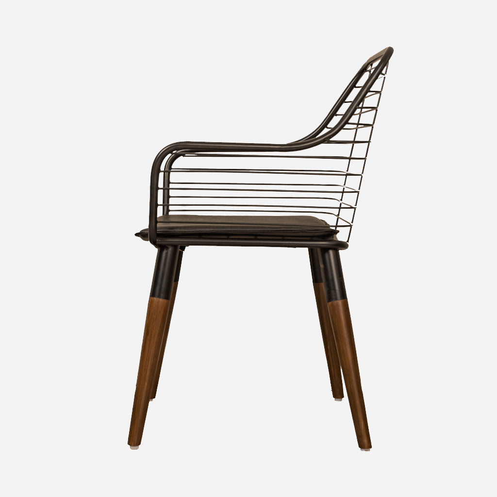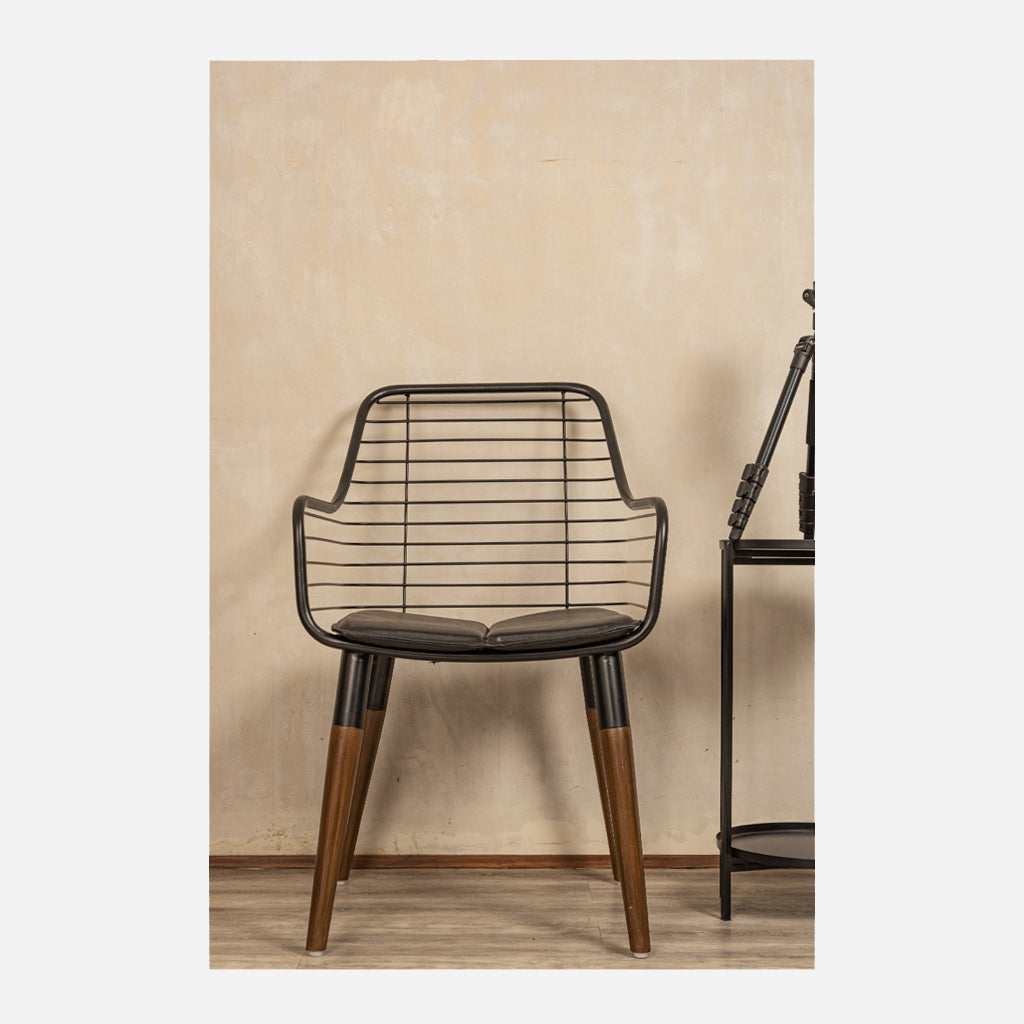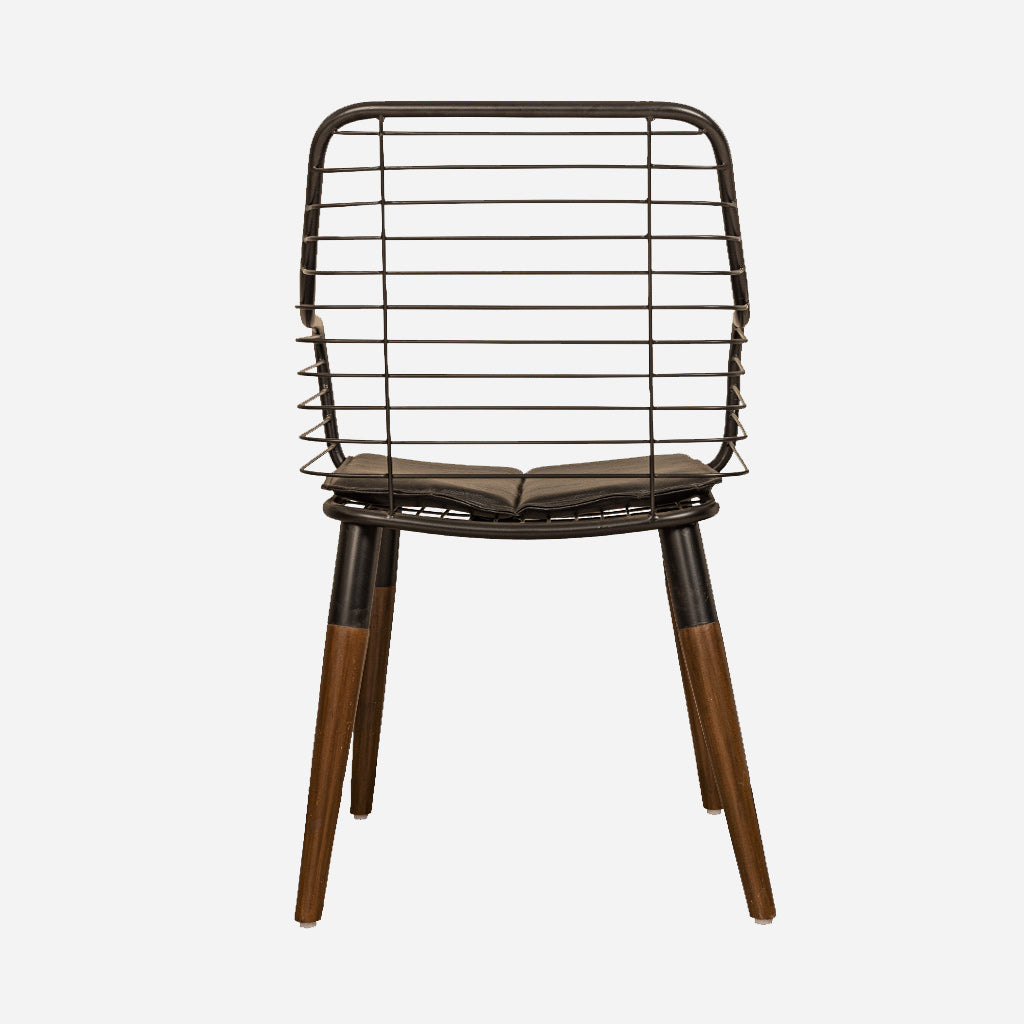 The Mero Wire Chair’s recognizable silhouette is constructed from cross-woven wires and positioned on a bent-wire and natural finished wood leg base. A soft black seat pad finishes the look and offers sitting comfort. A beautifully constructed piece of modern furniture makes this a perfect dining and side chair. A gorgeous seating option for your home or commercial setting with color customization options available.