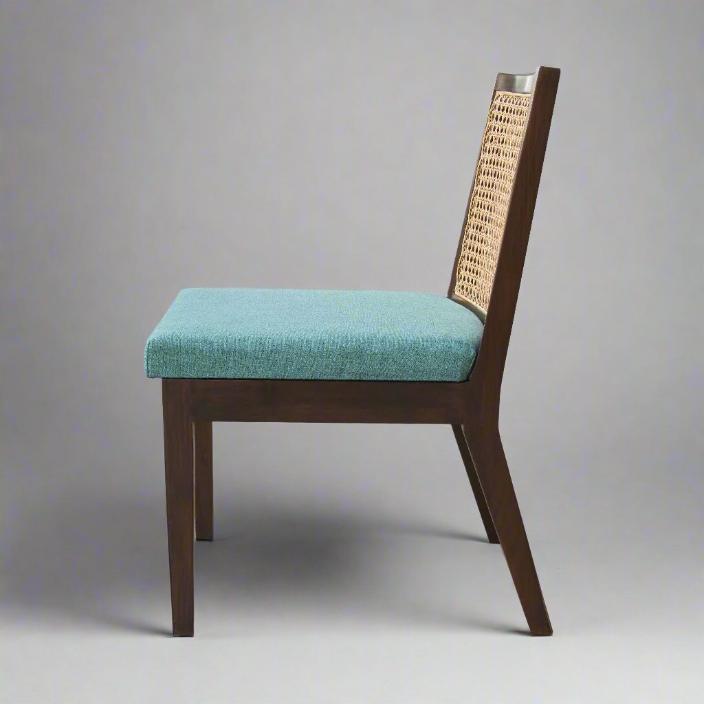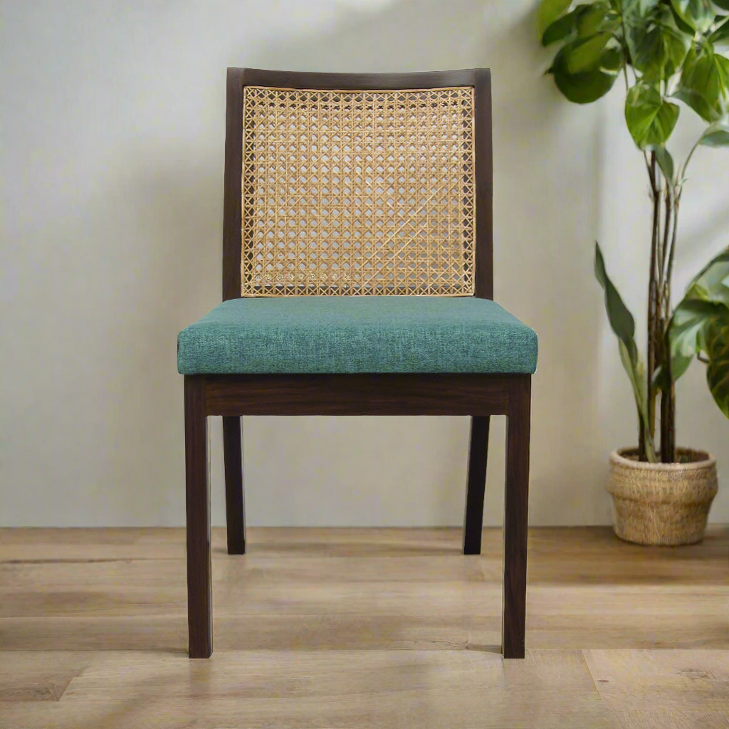 Mia, minimalist dining chair is simple, sophisticated, and an instant favorite. It features a clean, durable sleek black frame that's smooth to touch, in a nod to classic Danish design. The rattan hexagonal double-side weave offers comfort as well as style, with its ergonomic sloped back. The plush padded seat makes Mia a very comfortable chair. Add a touch of mid-century modern charm to your living space.