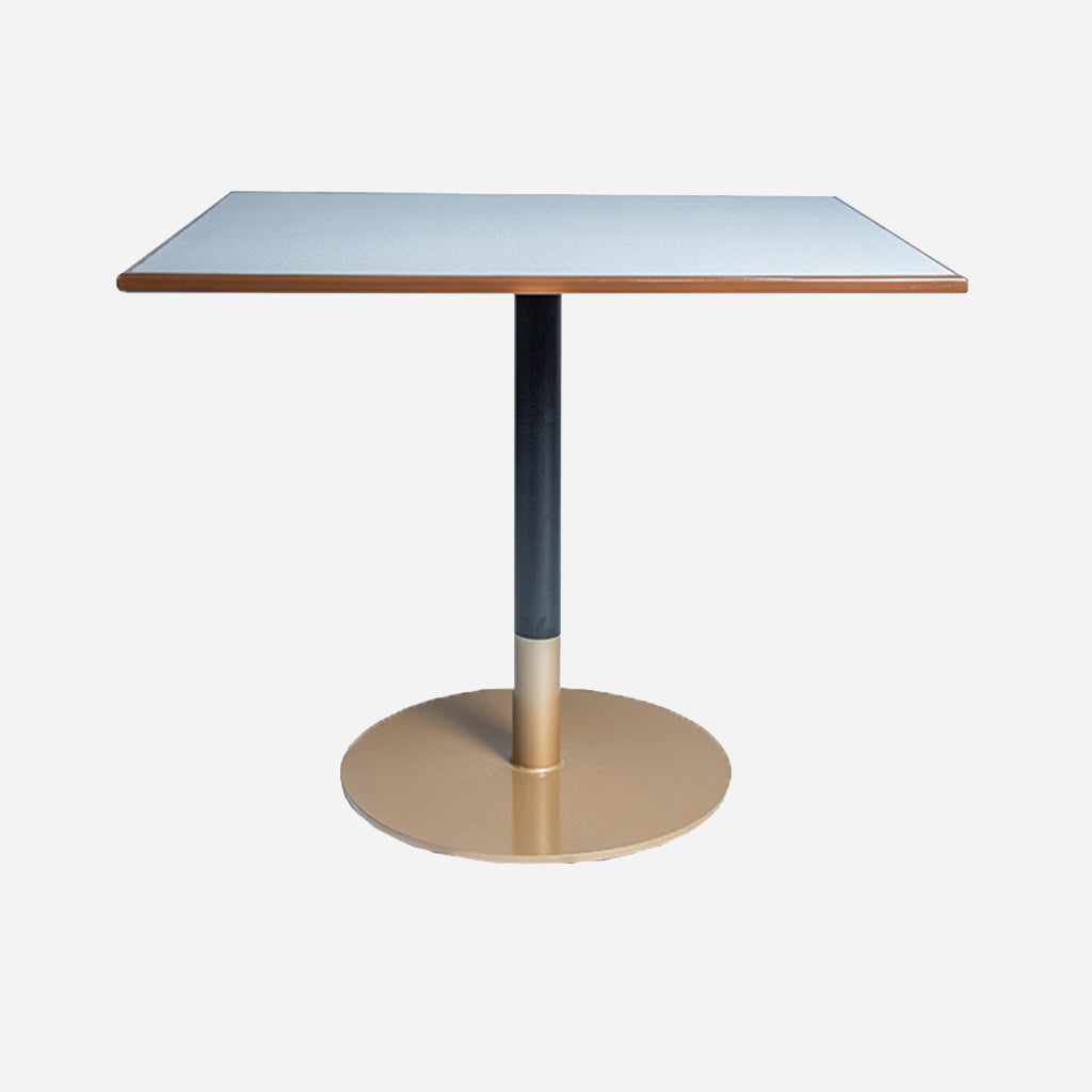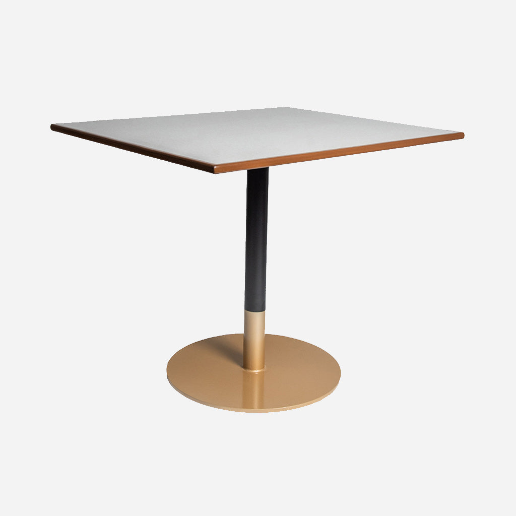 The Monaco Square Café table redefines contemporary elegance with its sleek metal stem base boasting a striking dual-color combination of black and matte gold. Its plywood laminate top, accented with a wood edge band, exudes sophistication while ensuring durability. This fusion of materials creates a captivating visual contrast, making the table a focal point in any café setting. With its modern design and impeccable craftsmanship, the Monaco Square Café table elevates the dining experience, blending style and functionality seamlessly.