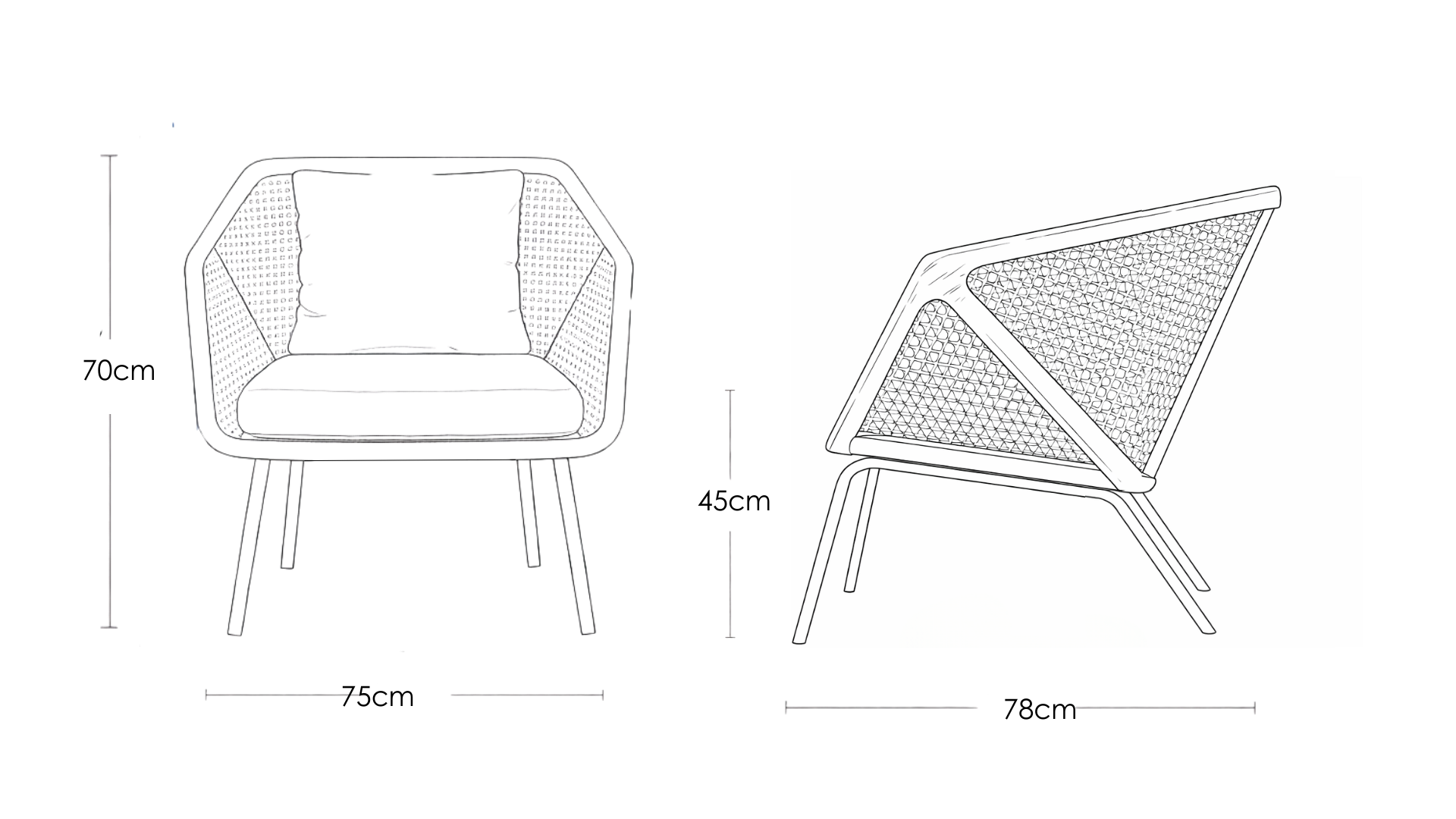 Classic bentwood and retro caning shape the angles of Rosebud, a contemporary take on the mid-century design. Solid Beech wood with natural cane weave flows the seamless design, integrating the back, armrest, and seat into one fluid silhouette. The loose cushions of the seat and back, upholstered in a shade of pink to complement the blond wood are added to snuggle in for a comfy and relaxing sit. The mild steel leg in black compliments the dark wood frame giving the chair a very modern touch.
