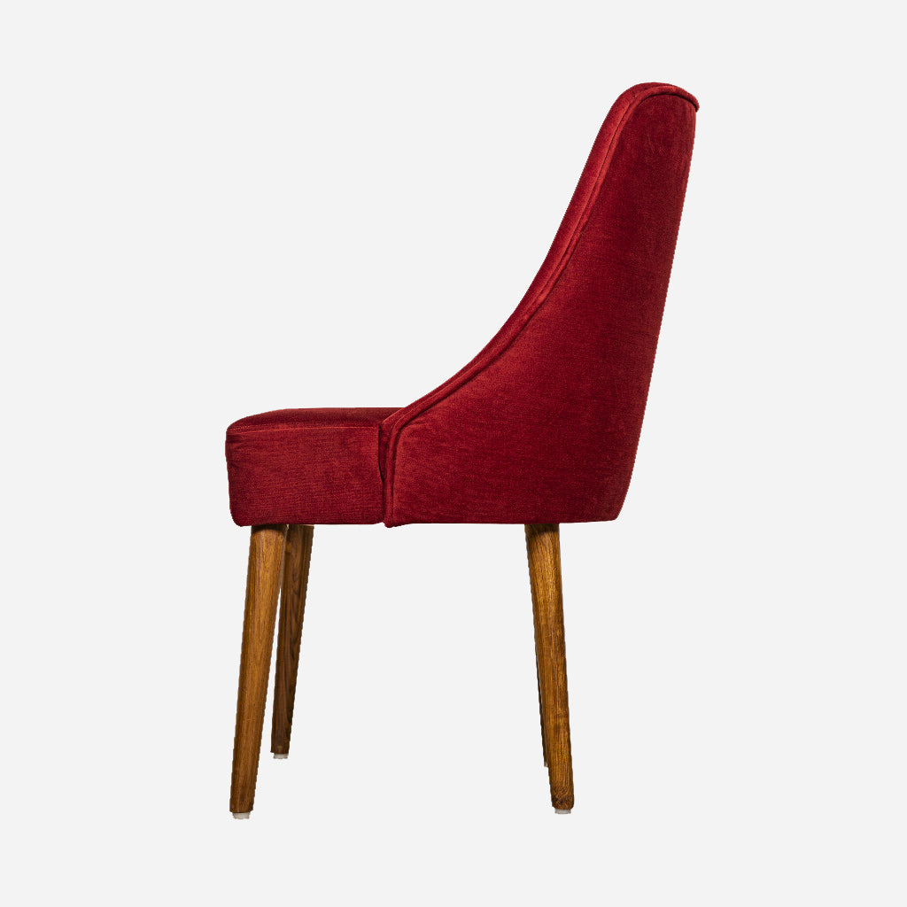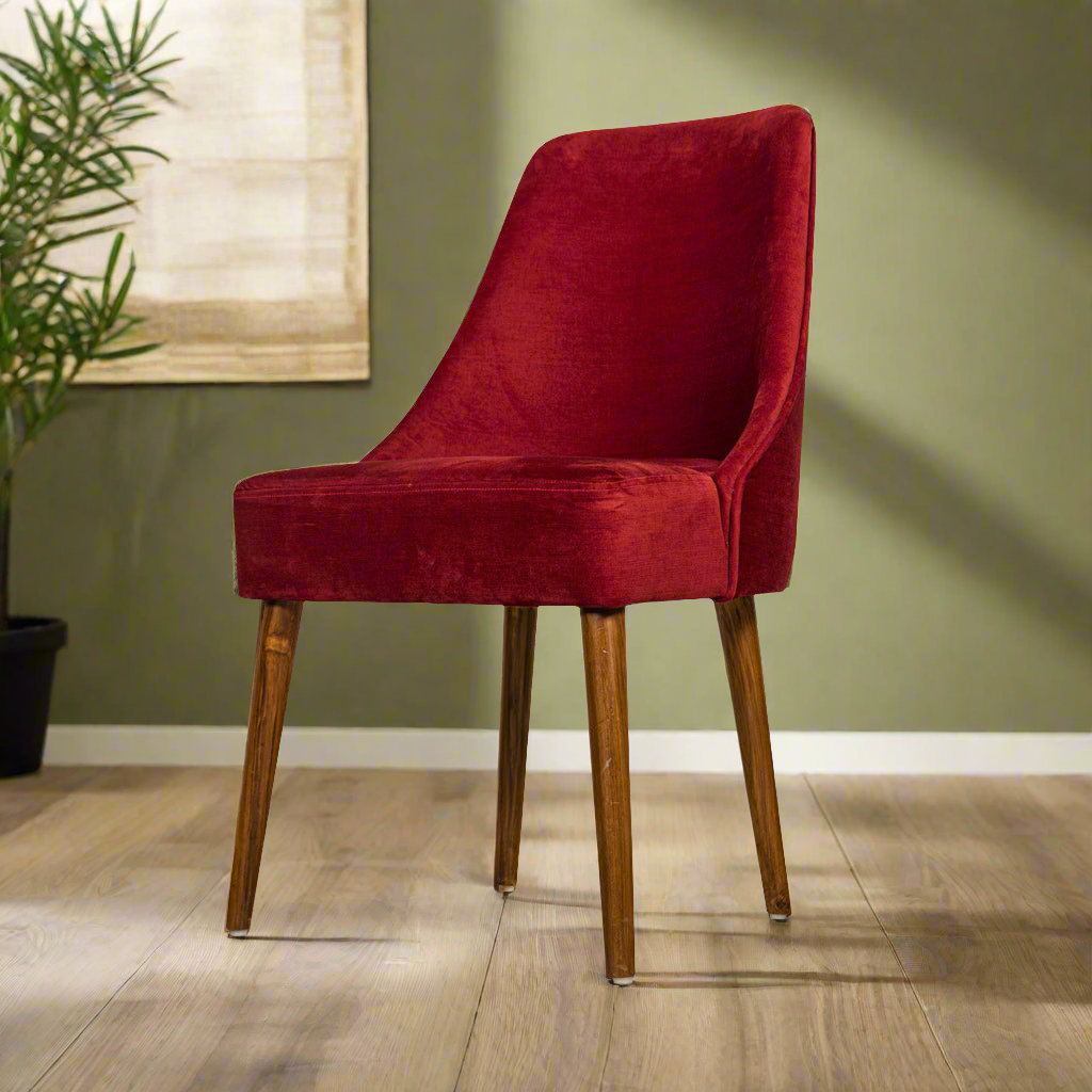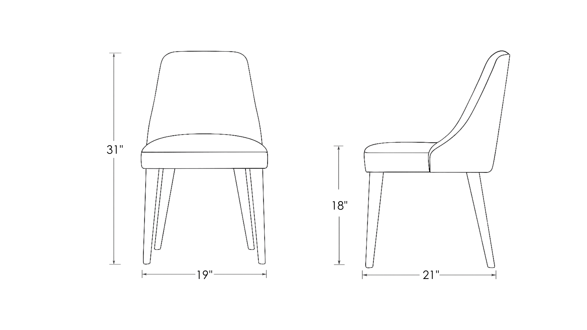 The mid-century modern dining chair Rowan is comfortable and has a clean-lined aesthetic. Its wide seat and sloping back offer an inviting seat for lingering guests and long dinner parties. Absolutely timeless, this dining chair adds a chic touch to your interior space. These chairs look fabulous gathered around any dining table, with clean lines and crisp upholstery handcrafted in an assortment of comfortable, attention-grabbing fabrics. Perfect for a restaurant setup or home decor.