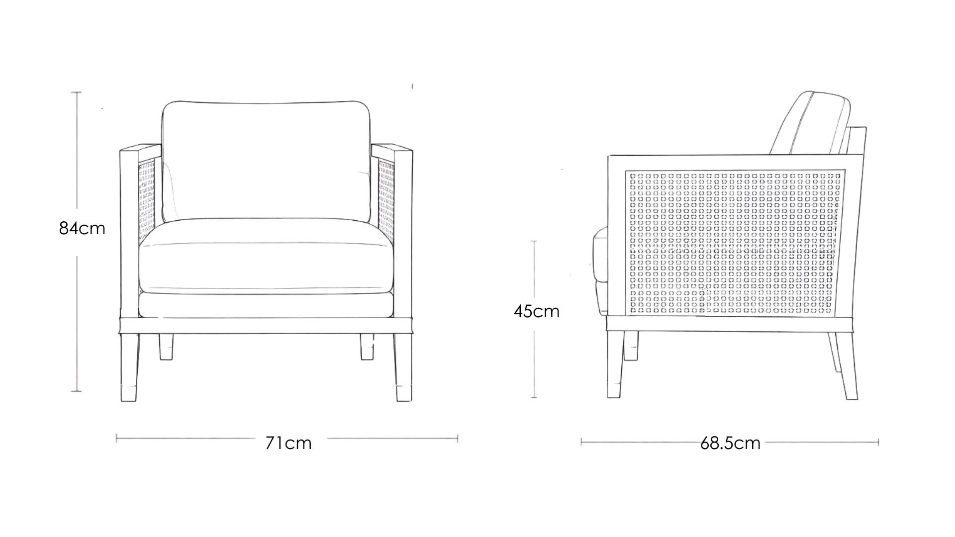 Timeless elegance, the Ruth lounge chair is a symbol of sophistication and comfort. Its sturdy beech wood frame provides a durable foundation, ensuring lasting support. Adorned with double-sided natural cane on both the back and sides, it exudes classic charm and offers a touch of organic beauty. The cushioned seat, paired with a loose cushion for the back, delivers plush comfort for luxurious lounging experiences. With its understated yet refined design, this chair seamlessly blends into any interior setting, adding a touch of timeless style. Elevate your relaxation moments with the perfect harmony of elegance and comfort embodied in this classic lounge chair